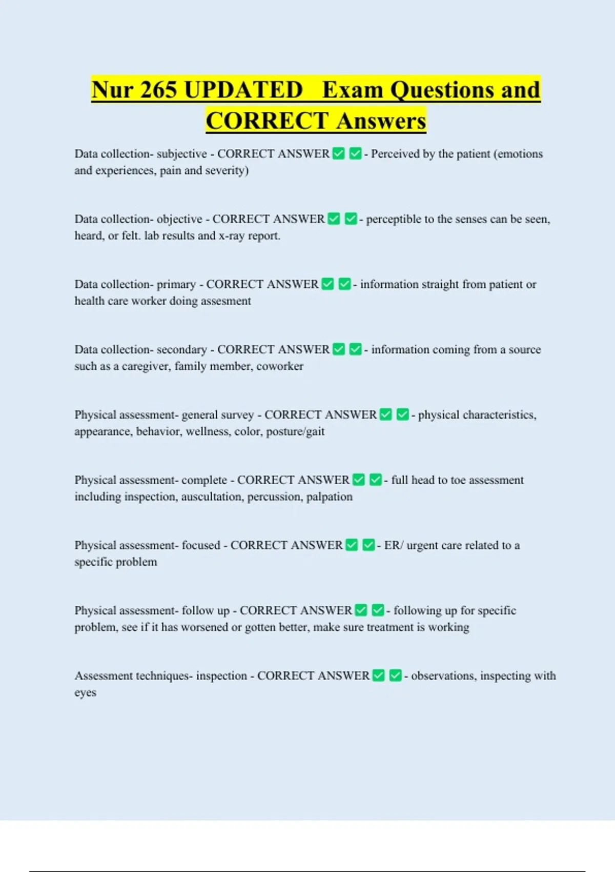 Physical assessment- complete - CORRECT ANSWER - full head to toe assessment