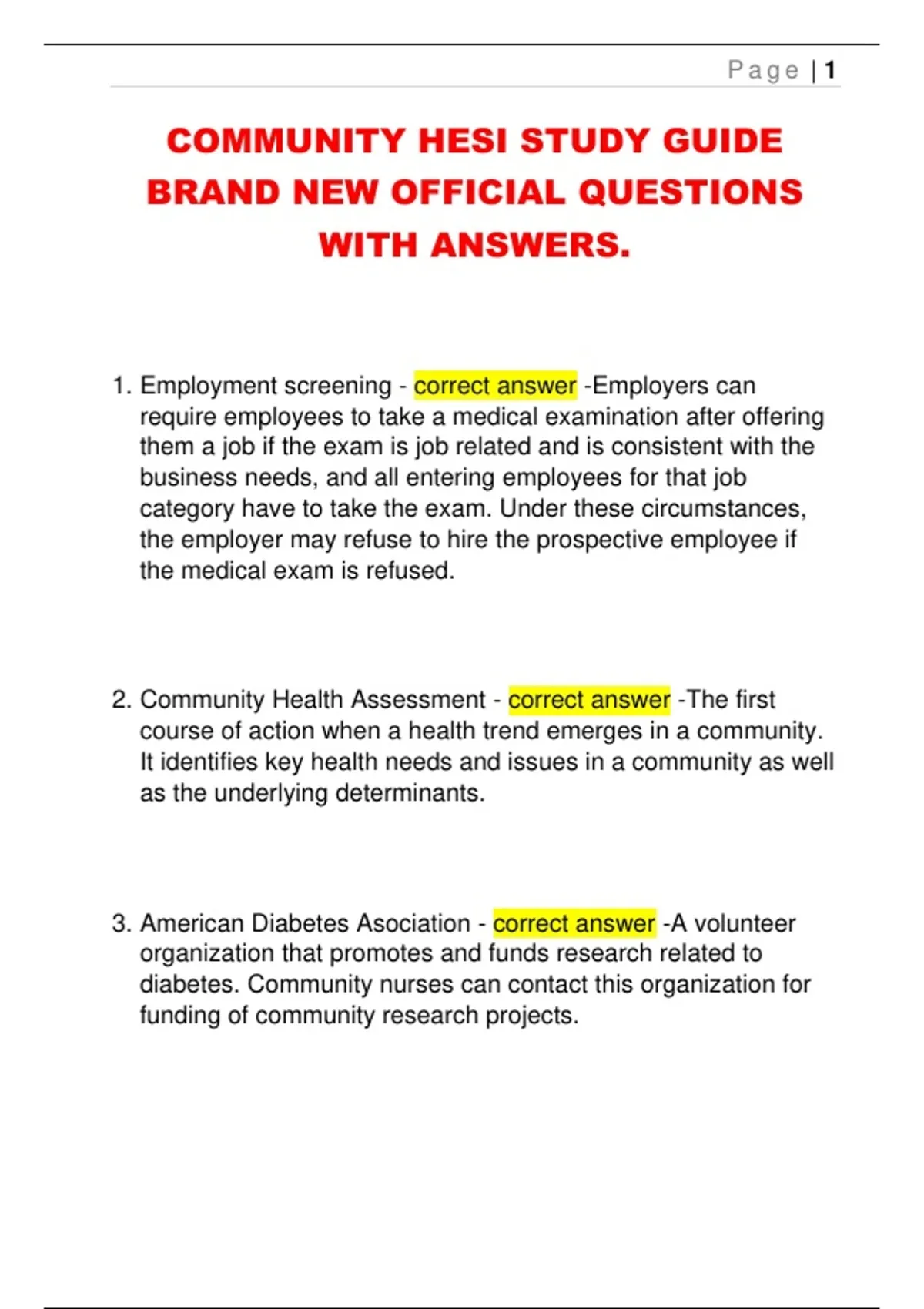 COMMUNITY HESI STUDY GUIDE BRAND NEW OFFICIAL QUESTIONS WITH ANSWERS.