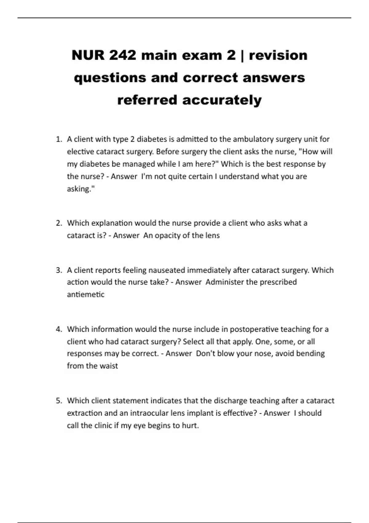 NUR 242 main exam 2 | revision questions and correct answers referred accurately