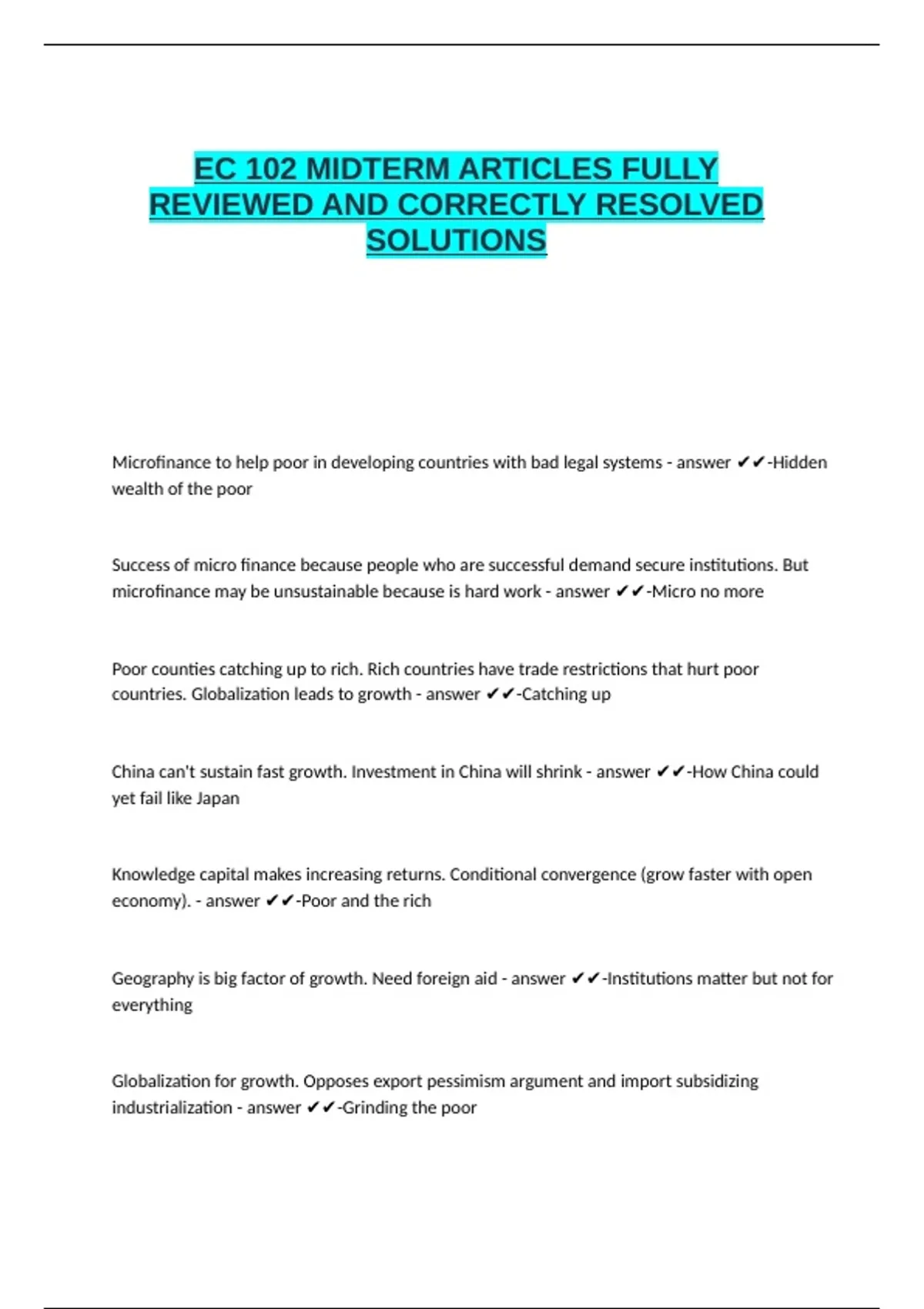 Microfinance to help poor in developing countries with bad legal systems - answer ✔✔-Hidden