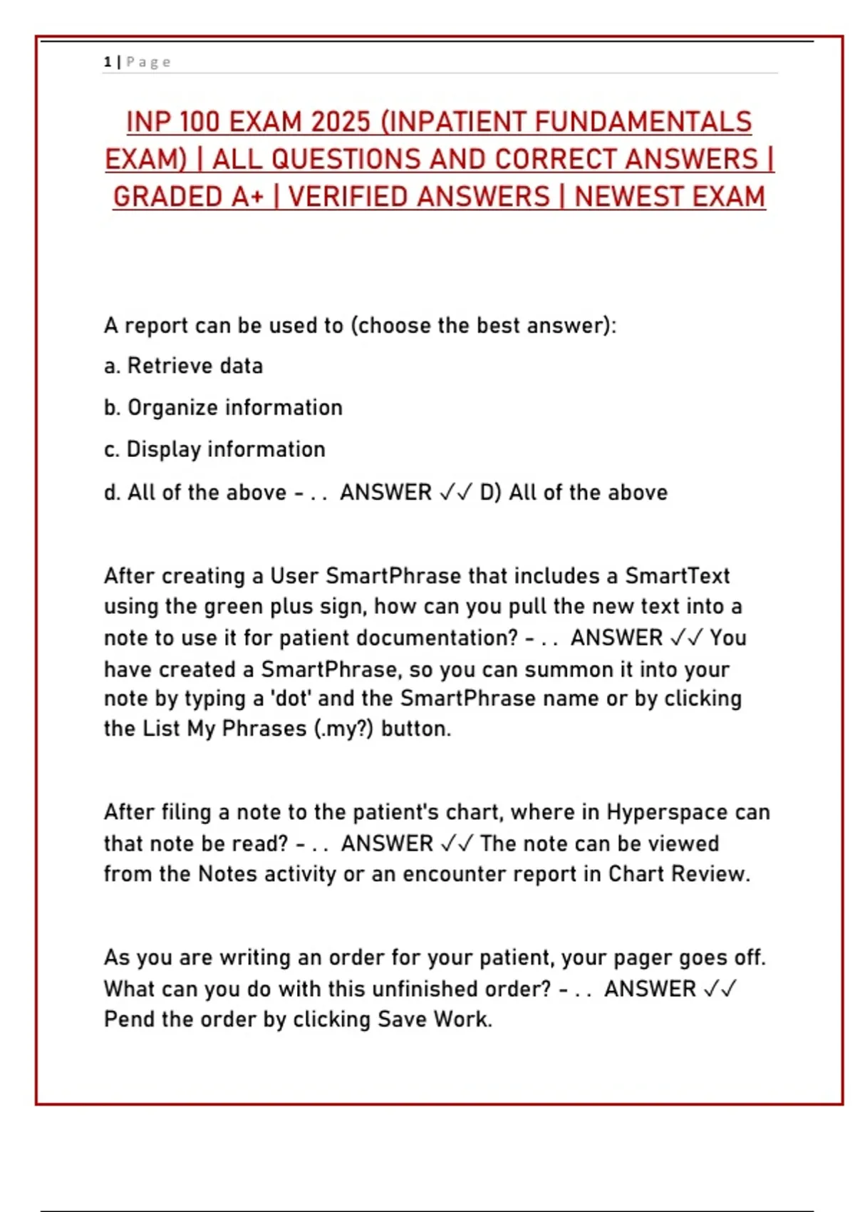 INP 100 EXAM 2025 (INPATIENT FUNDAMENTALS