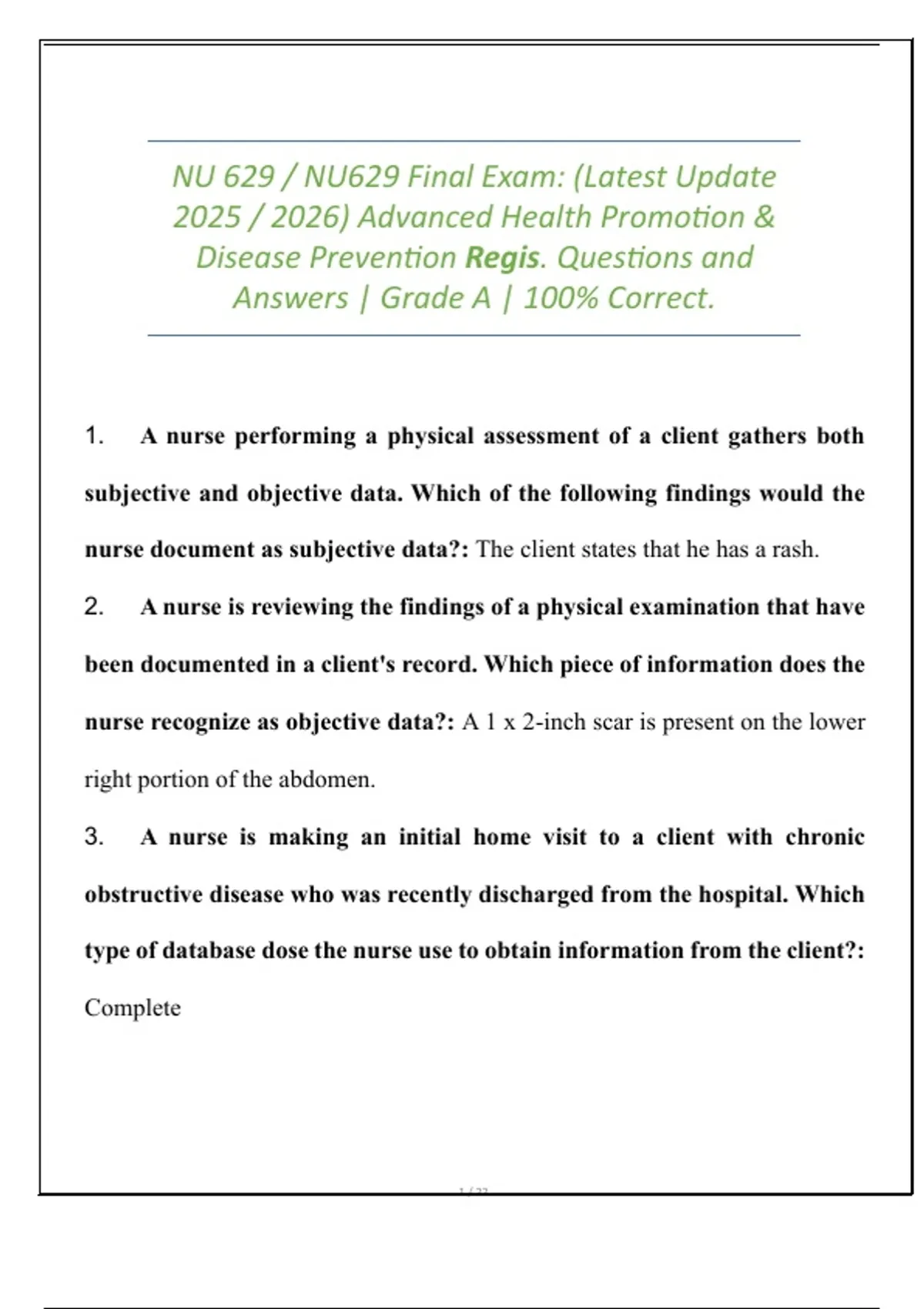 Final Exam: NU629 (Latest Update 2025 / 2026) Advanced Health Promotion & Disease Prevention. Regis