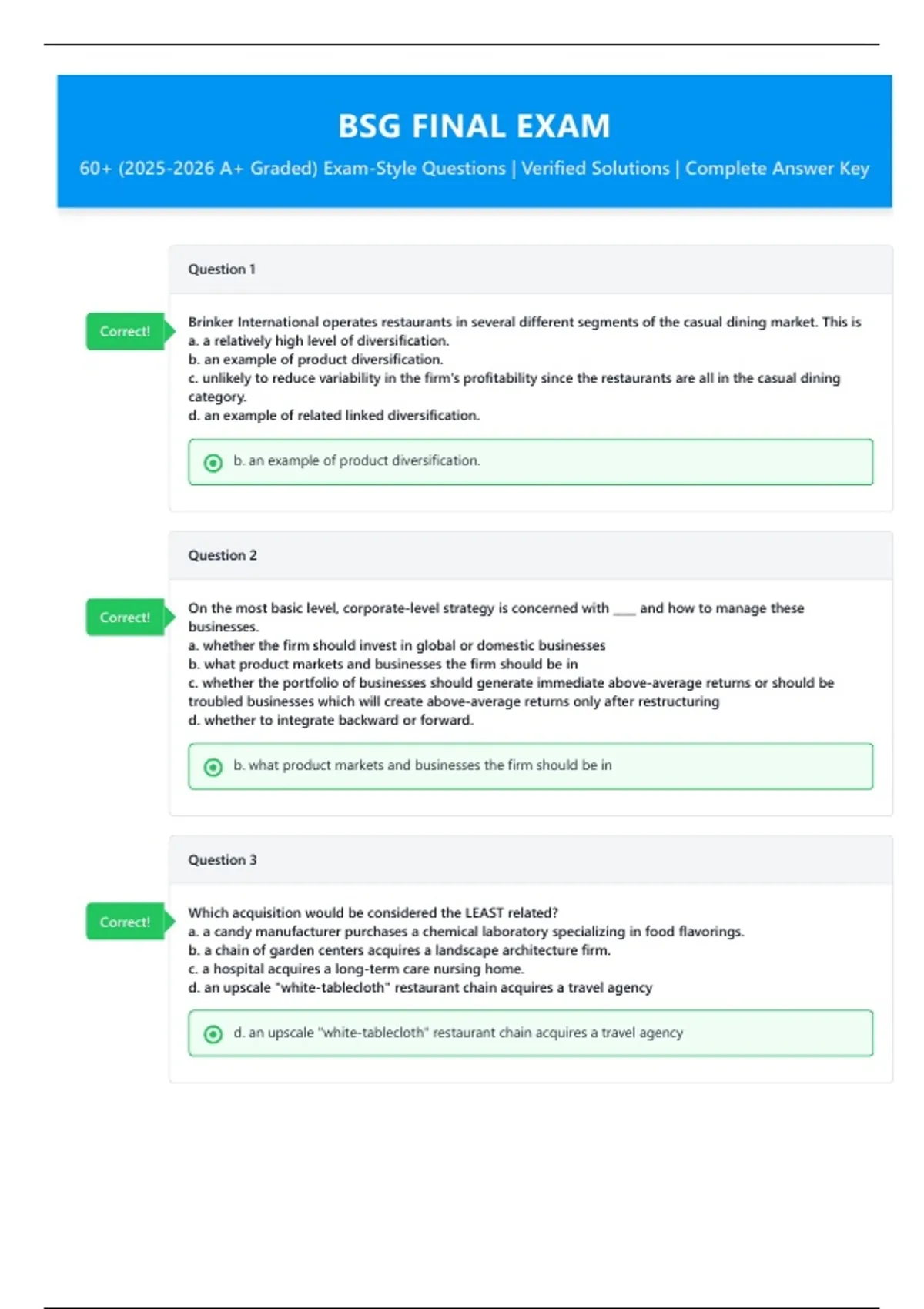 60+ (2025-2026 A+ Graded) Exam-Style Questions | Verified Solutions | Complete Answer Key