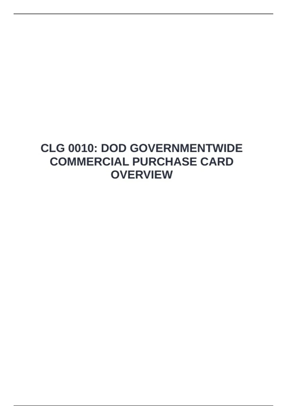 CLG 0010: DOD GOVERNMENTWIDE COMMERCIAL PURCHASE CARD OVERVIEW