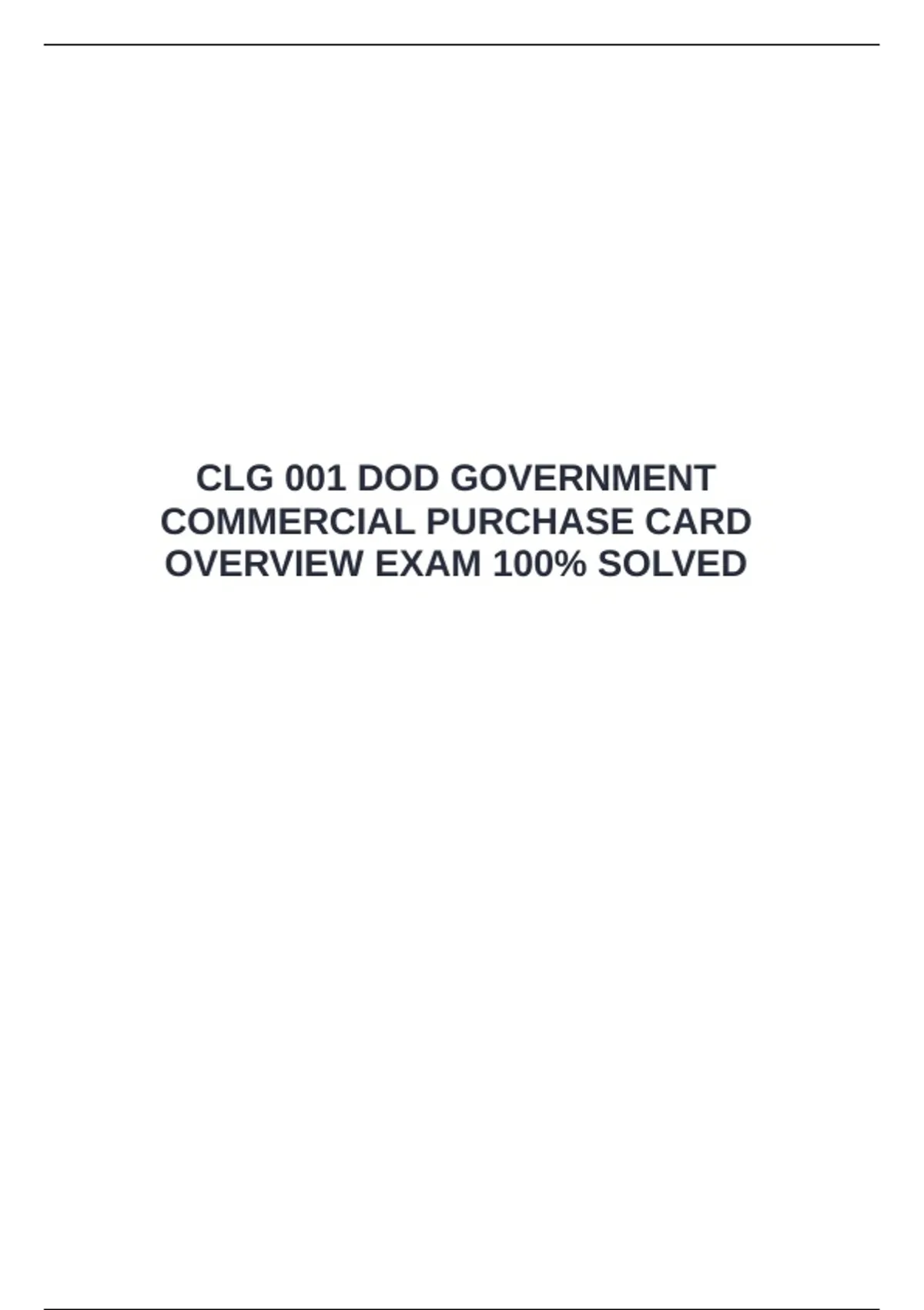 CLG 001 DOD GOVERNMENT COMMERCIAL PURCHASE CARD OVERVIEW EXAM 100% SOLVED