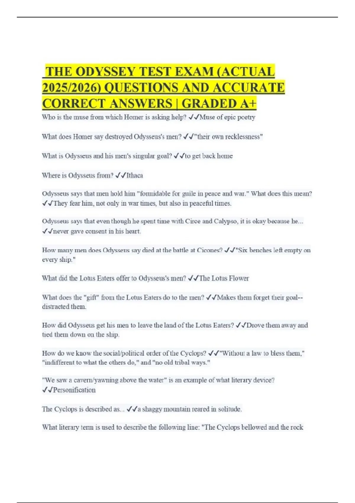 THE ODYSSEY TEST EXAM (ACTUAL 2025/2026) QUESTIONS AND ACCURATE CORRECT ANSWERS | GRADED A+