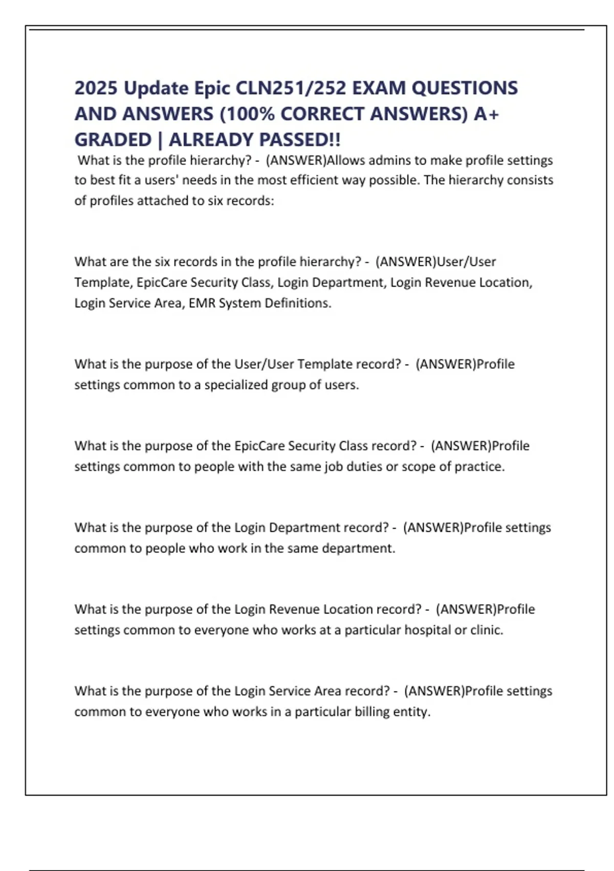 2025 Update Epic CLN251/252 EXAM QUESTIONS