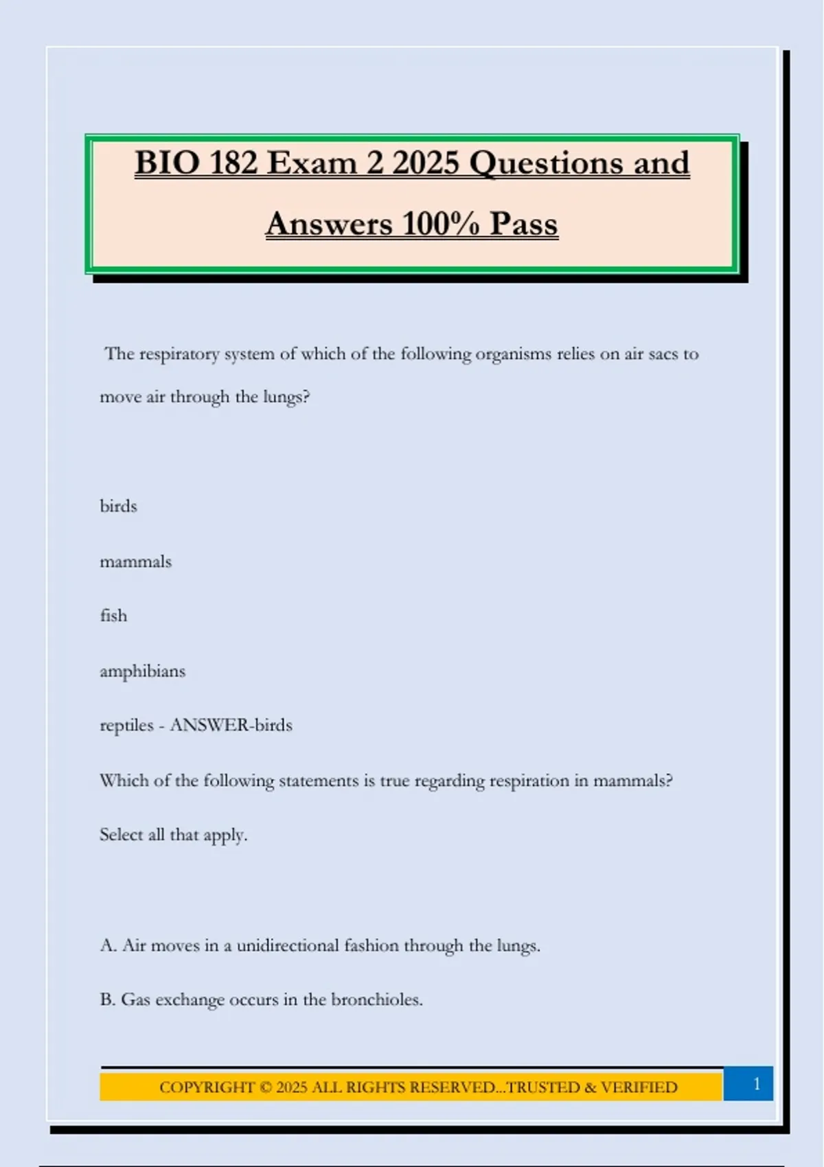 BIO 182 Exam 2 2025 Questions and
