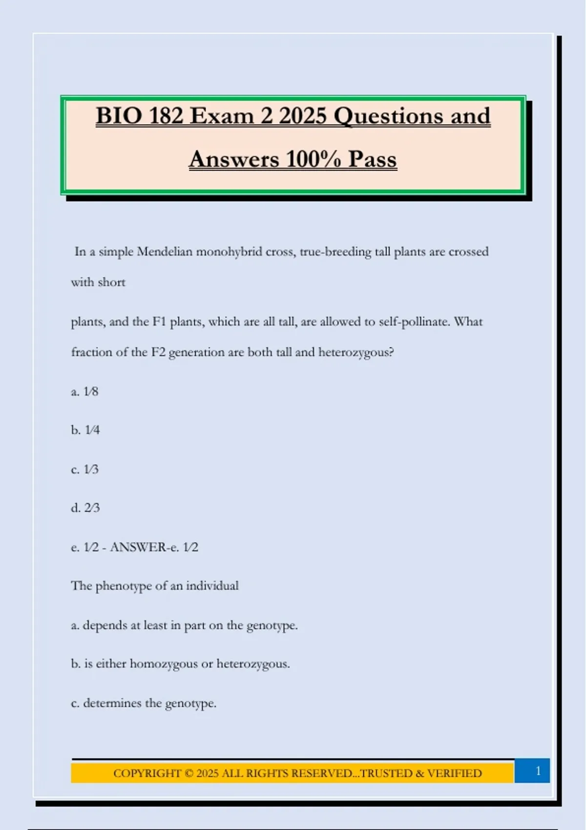 BIO 182 Exam 2 2025 Questions and Answers 100% Pass