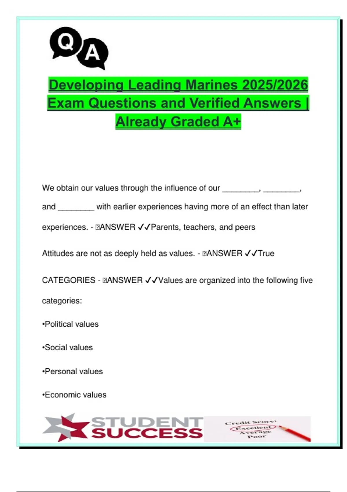 VALUES AND LEADERSHIP - 🧠ANSWER ✔✔If a Marine is left without any