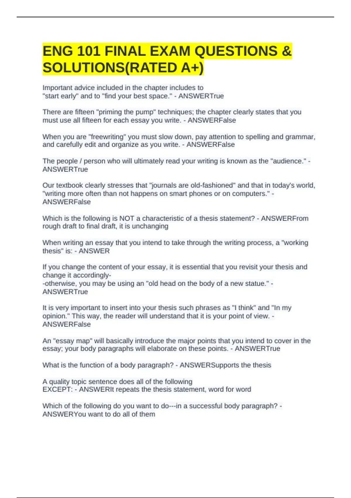 Which is the following is NOT a characteristic of a thesis statement? - ANSWERFrom