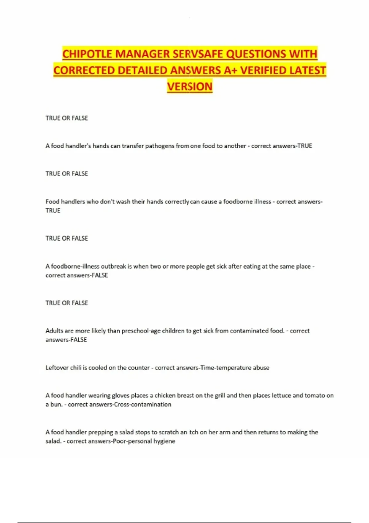 CHIPOTLE MANAGER SERVSAFE QUESTIONS WITH CORRECTED DETAILED ANSWERS A+ VERIFIED LATEST VERSION