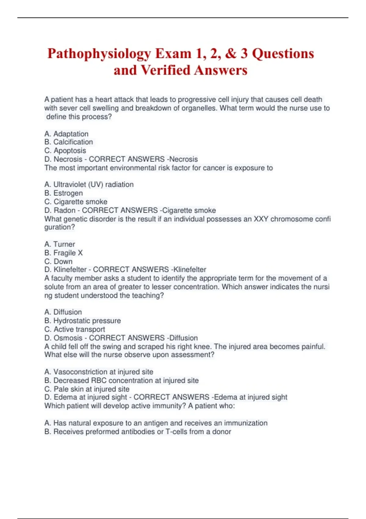 Pathophysiology Exam 1, 2, & 3 Questions