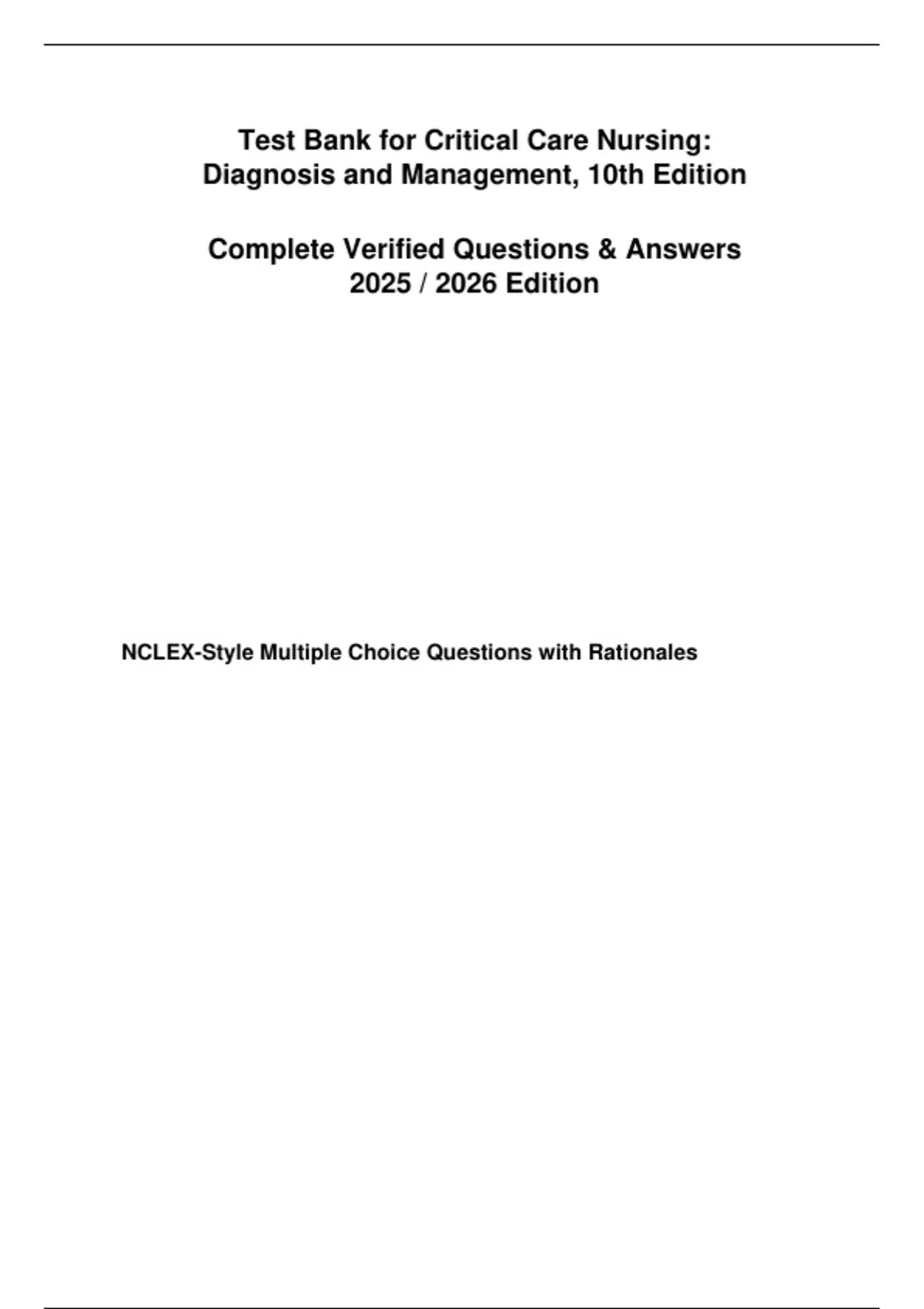 Test Bank for Critical Care Nursing: Diagnosis and Management 10th Edition Complete Verified Questions & Answers 2025 / 2026 Edition