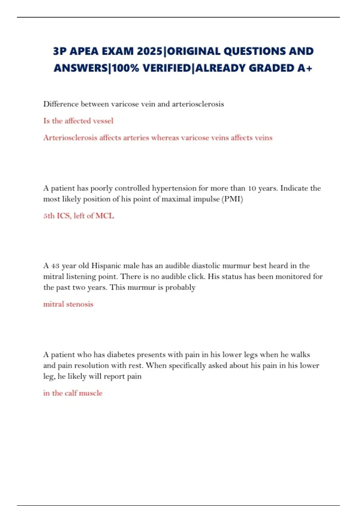 3P APEA EXAM 2025|ORIGINAL QUESTIONS AND ANSWERS|100% VERIFIED|ALREADY GRADED A+