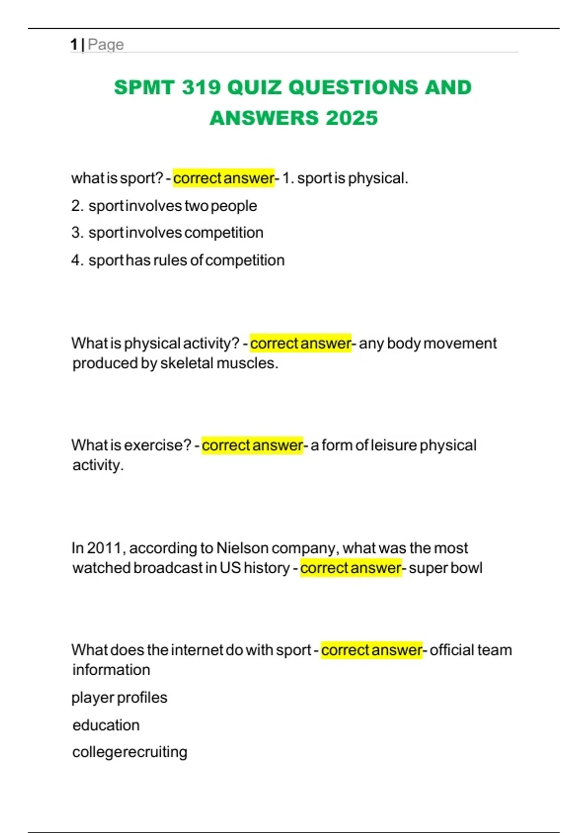 what is sport? - correct answer- 1. sport is physical.