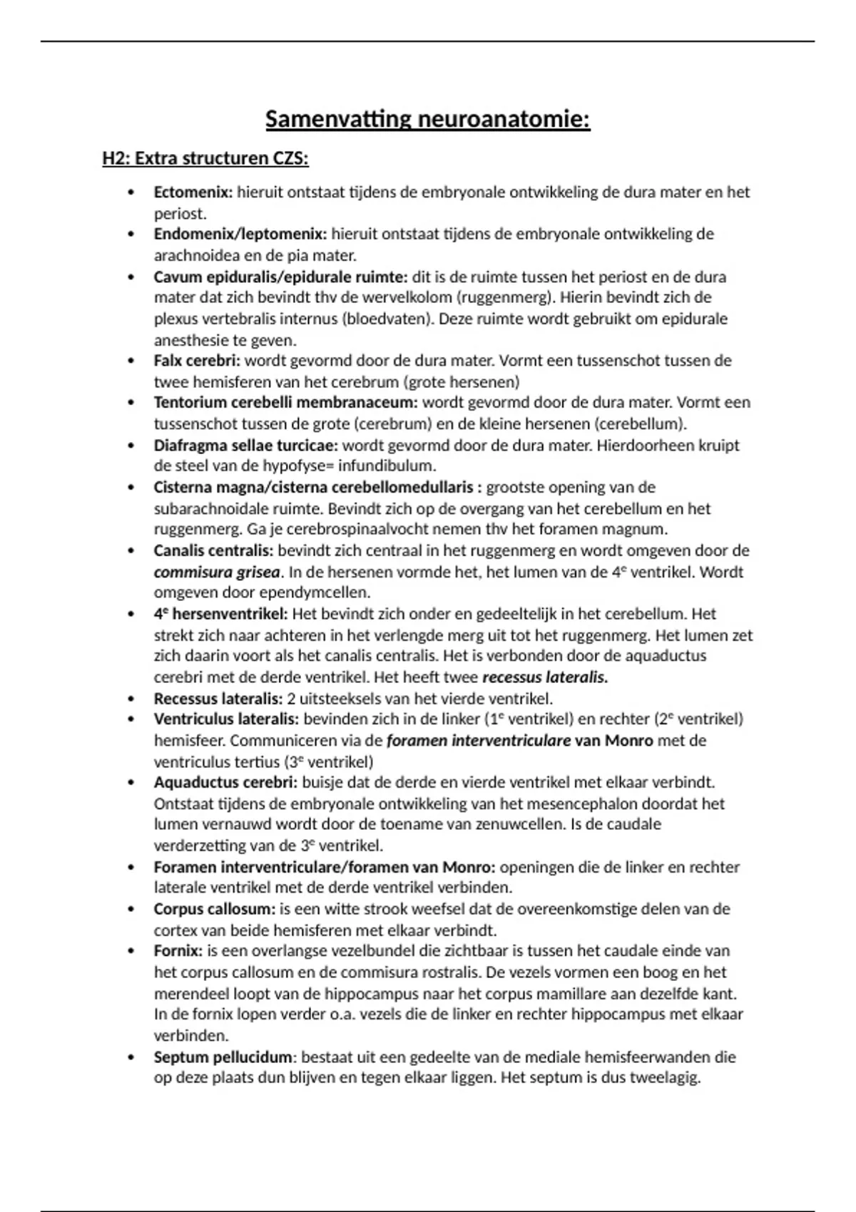 Samenvatting neuroanatomie:
