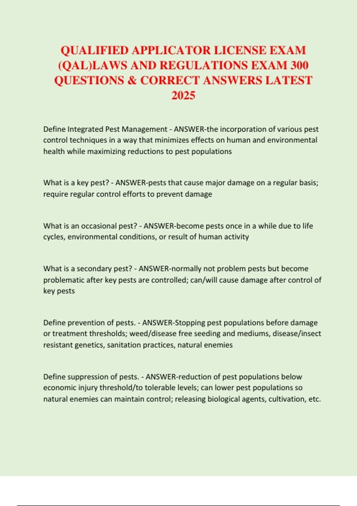 QUALIFIED APPLICATOR LICENSE EXAM