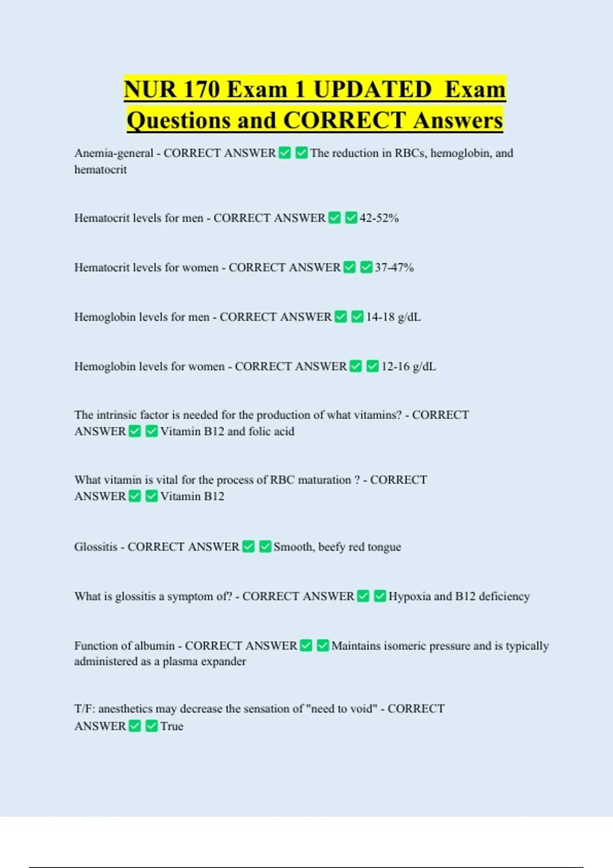 Hematocrit levels for women - CORRECT ANSWER 37-47%