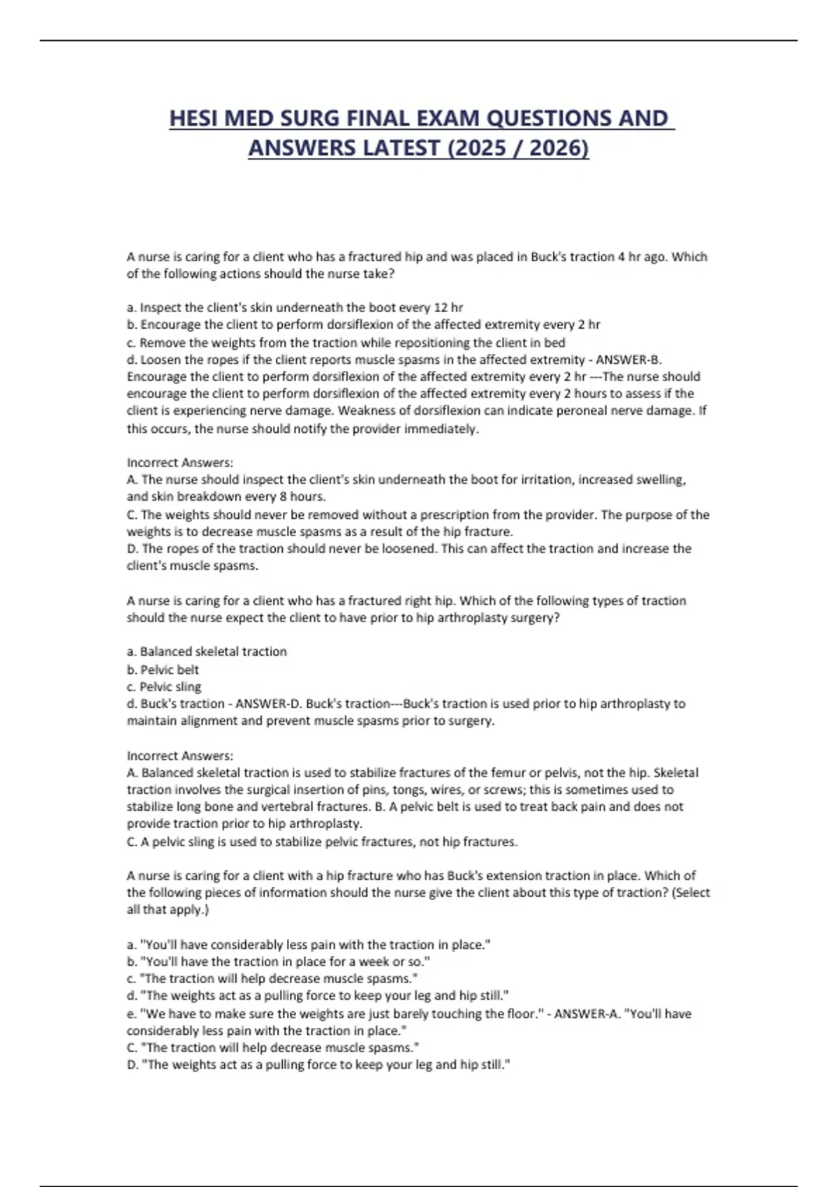 HESI MED SURG FINAL EXAM QUESTIONS AND