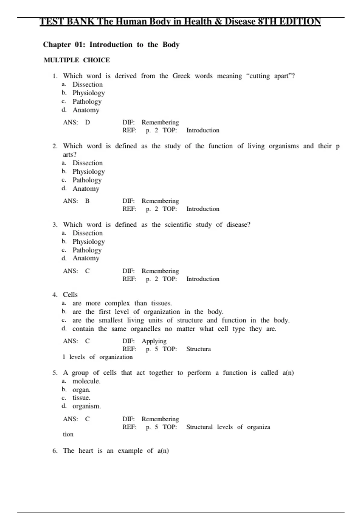 TEST BANK The Human Body in Health & Disease 8TH EDITION