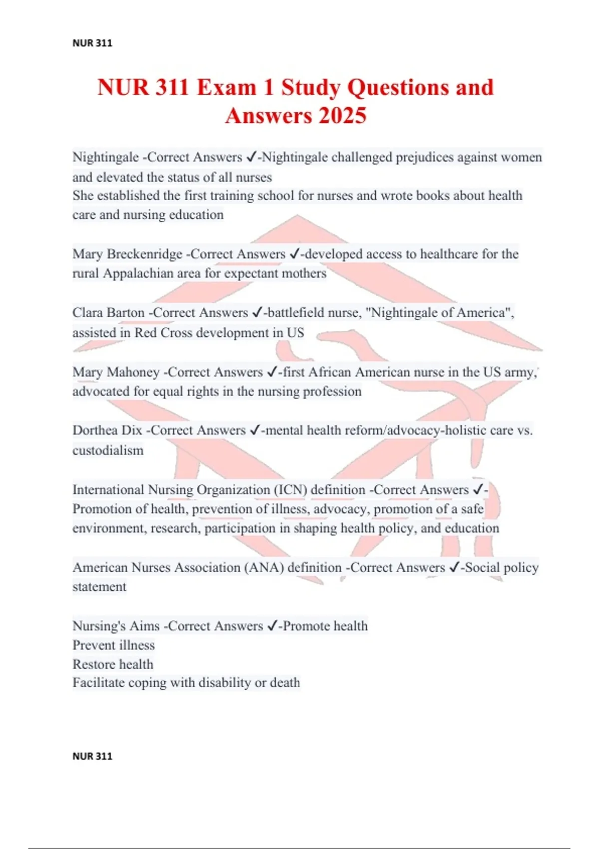 NUR 311 Exam 1 Study Questions and Answers 2025