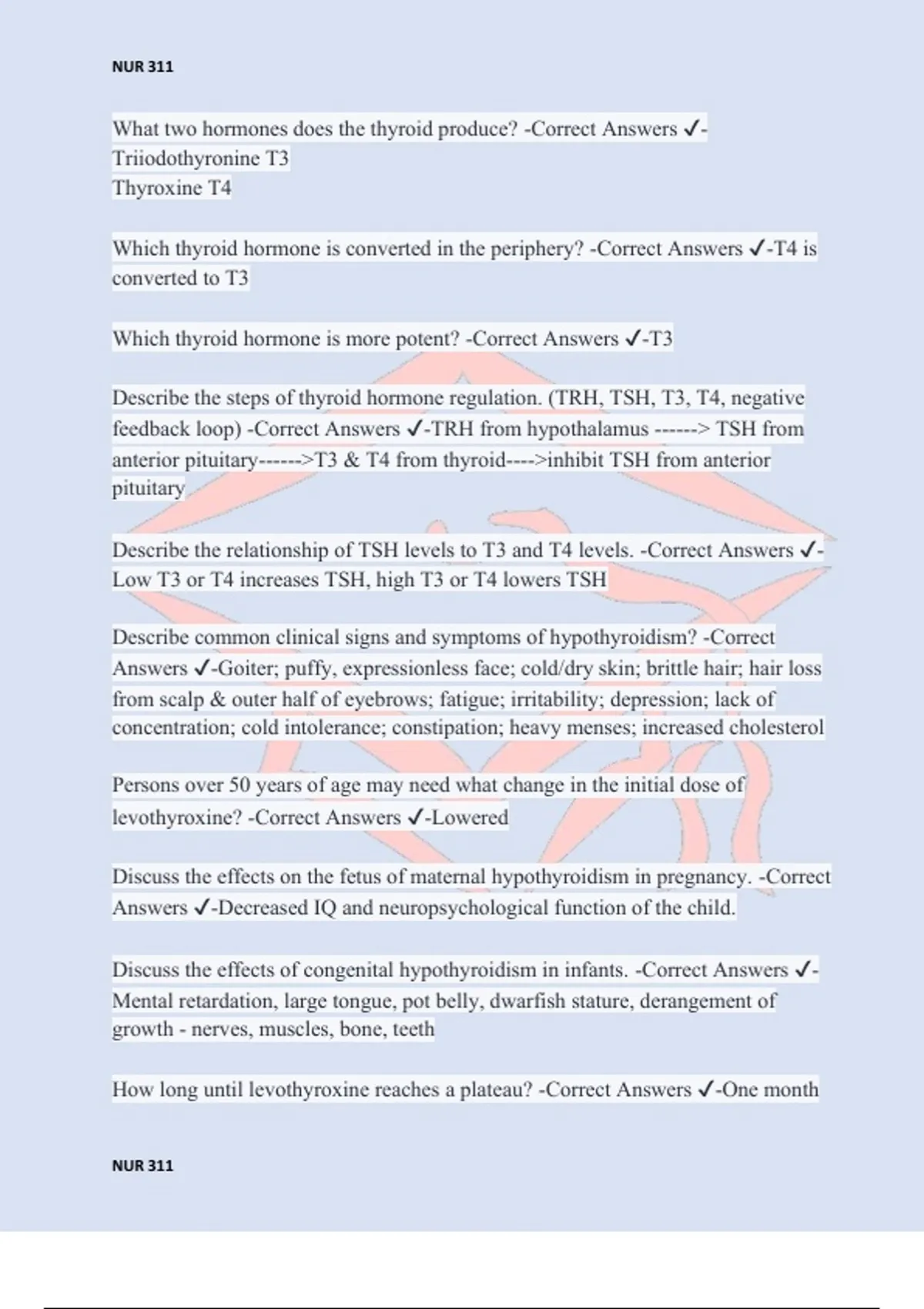 NUR 311 Exam 3 Study Guide Questions with Verified Detailed Solutions Graded A+ 2025