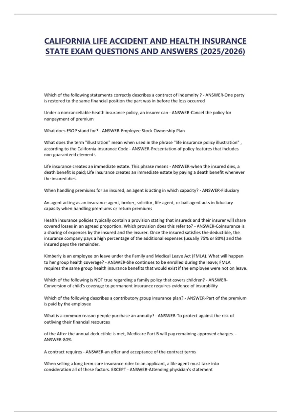 CALIFORNIA LIFE ACCIDENT AND HEALTH INSURANCE