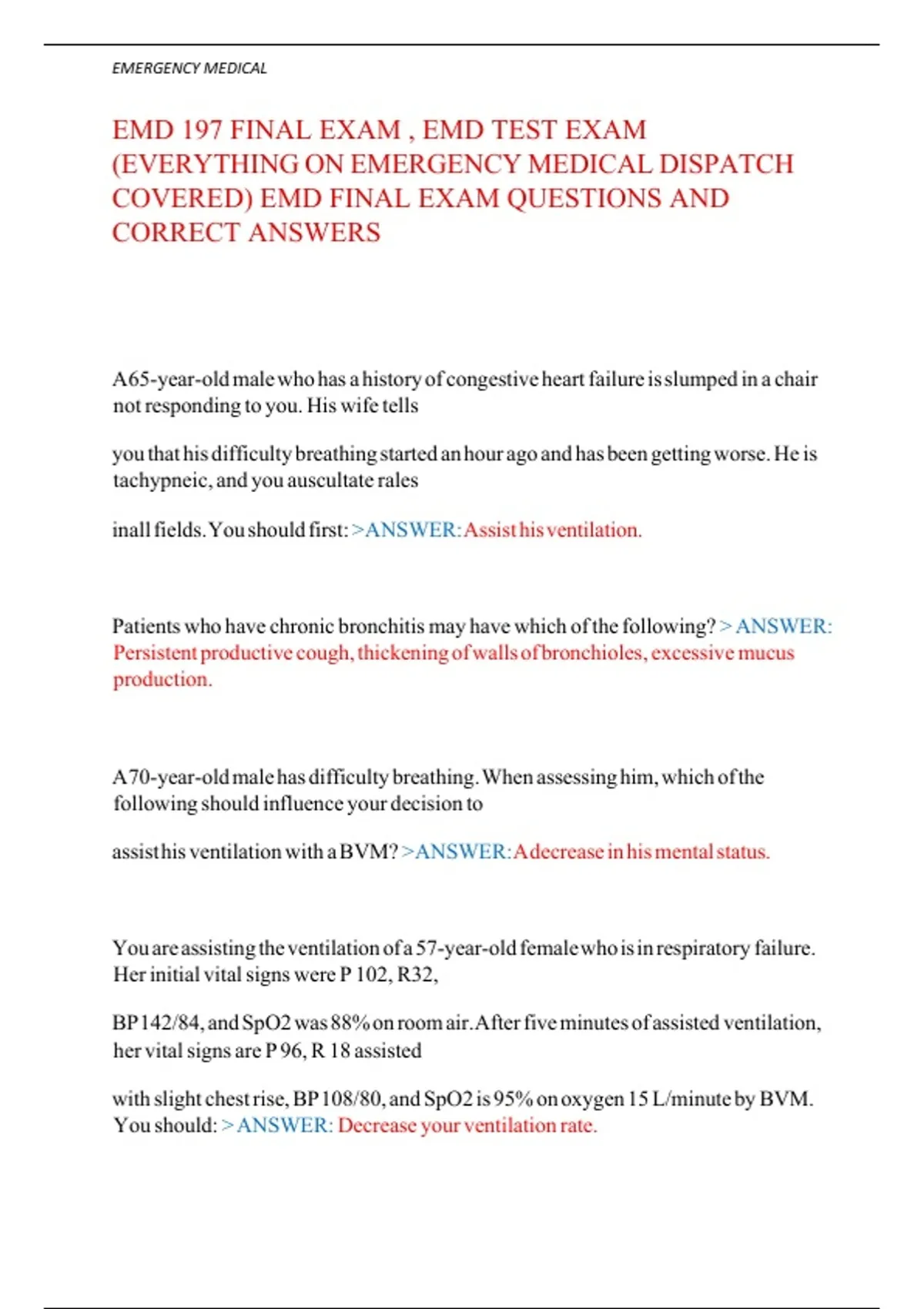 EMD 197 FINAL EXAM , EMD TEST EXAM (EVERYTHING ON EMERGENCY MEDICAL DISPATCH COVERED) EMD FINAL EXAM QUESTIONS AND CORRECT ANSWERS