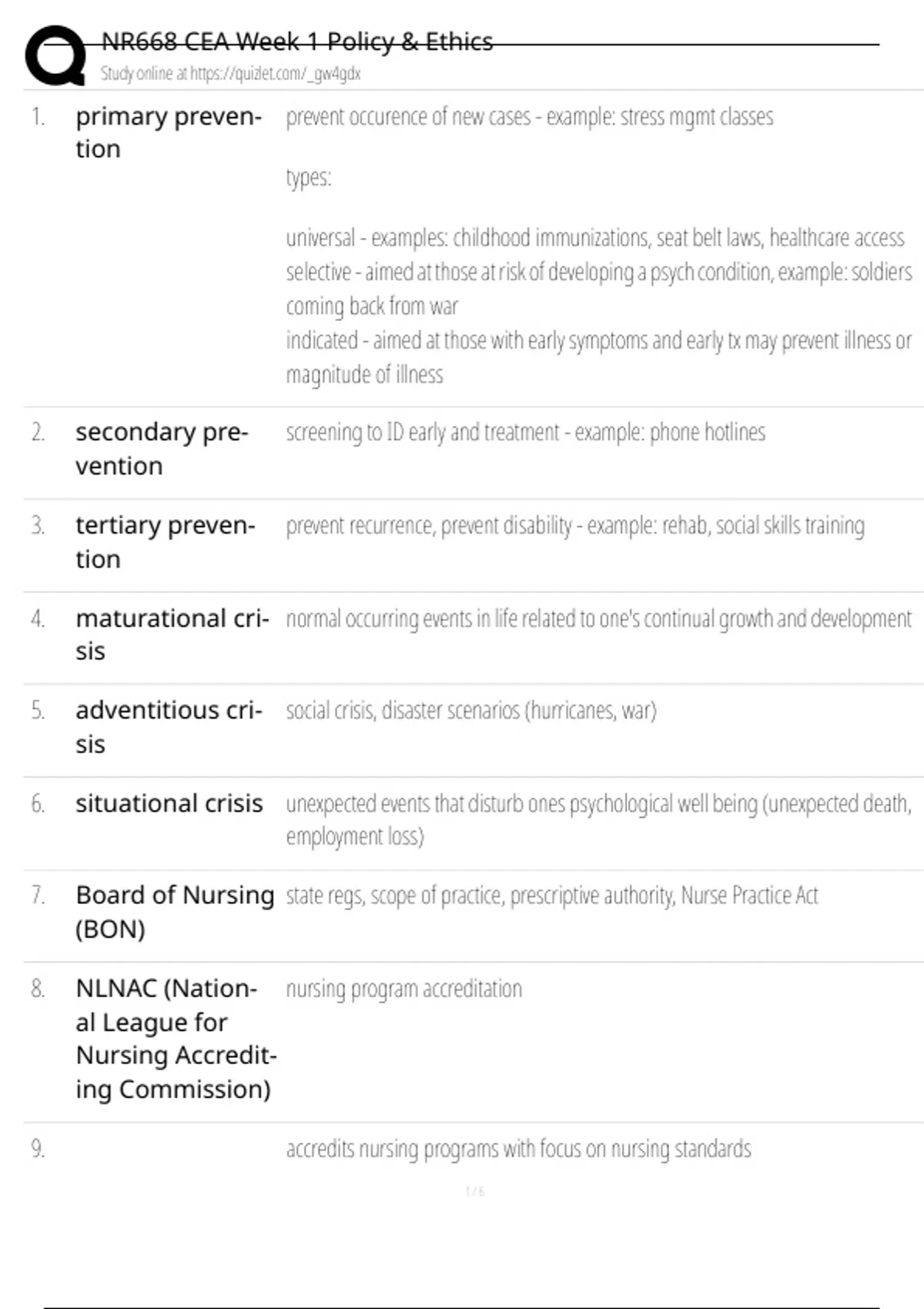 , NR668 CEA Week 1 Policy & Ethics