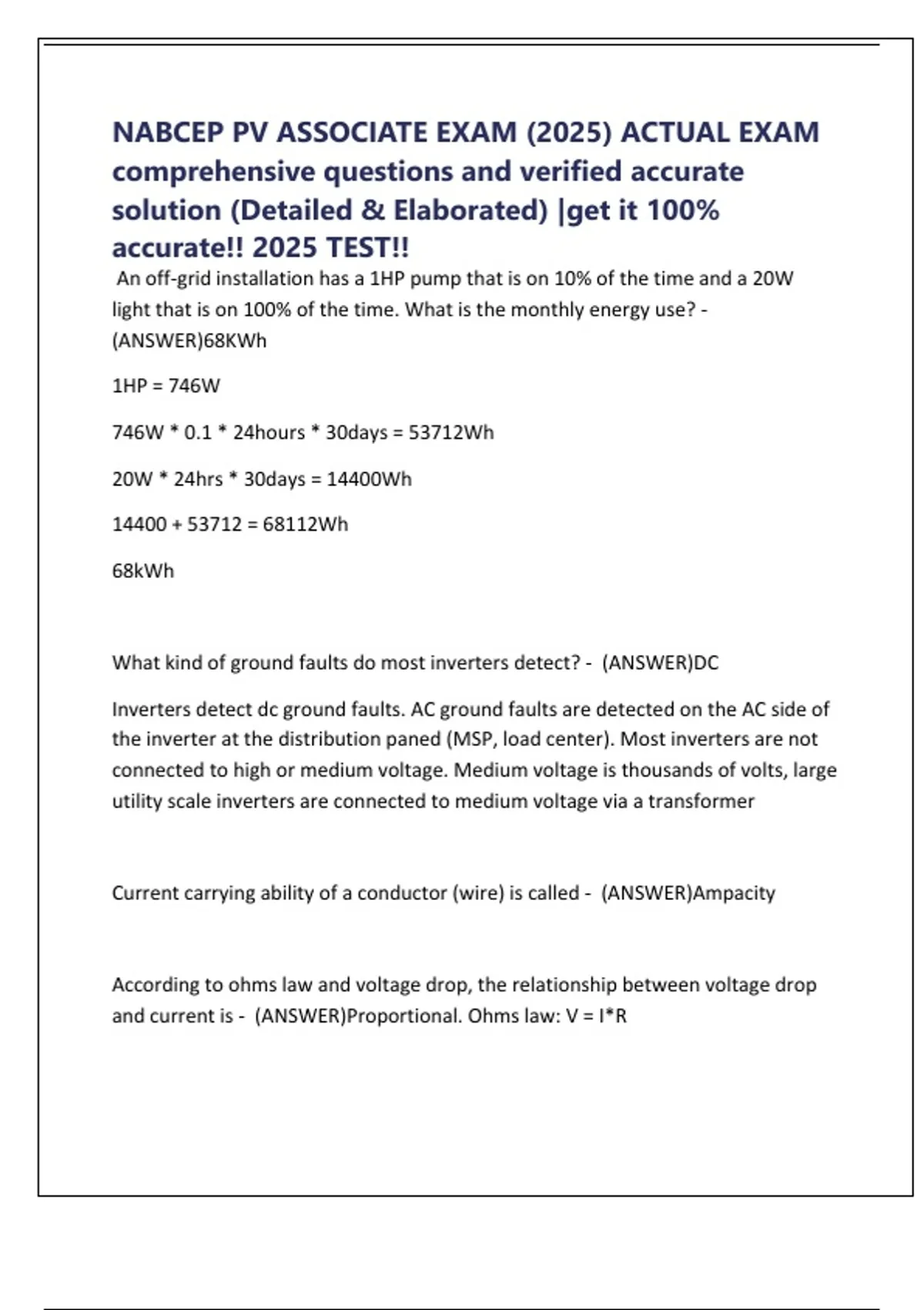NABCEP PV ASSOCIATE EXAM (2025) ACTUAL EXAM