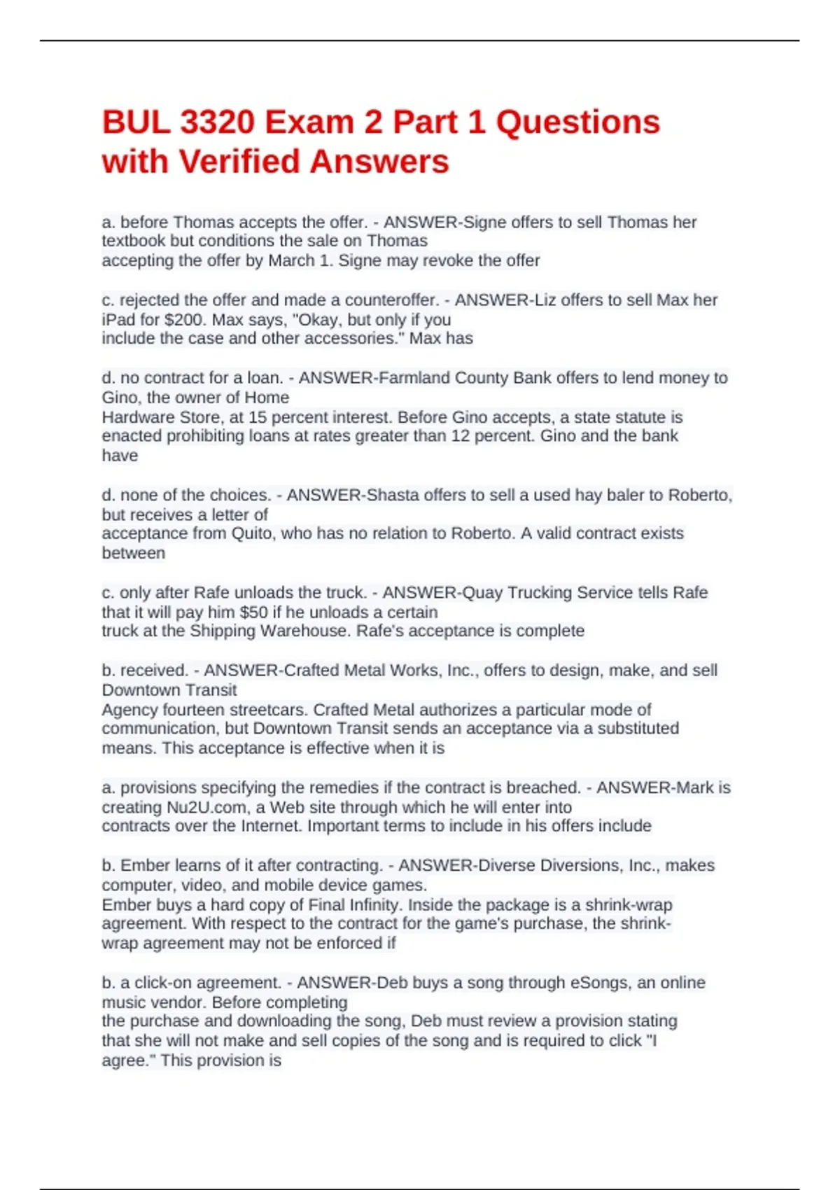 BUL 3320 Exam 2 Part 1 Questions with Verified Answers