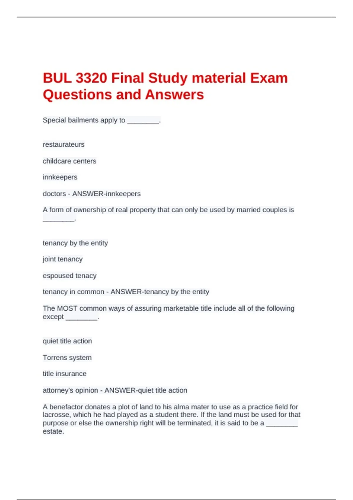 BUL 3320 Final Study material Exam
