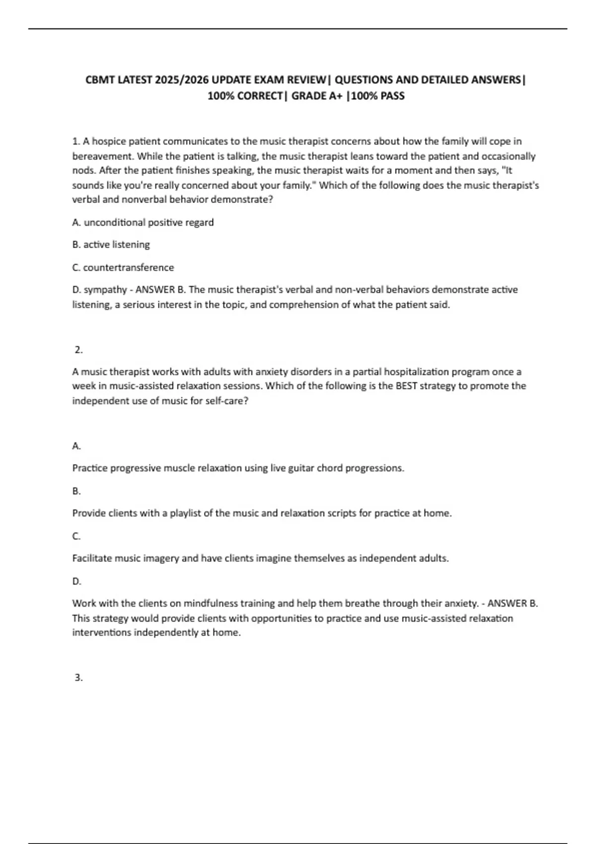 D. sympathy - ANSWER B. The music therapist's verbal and non-verbal behaviors demonstrate active