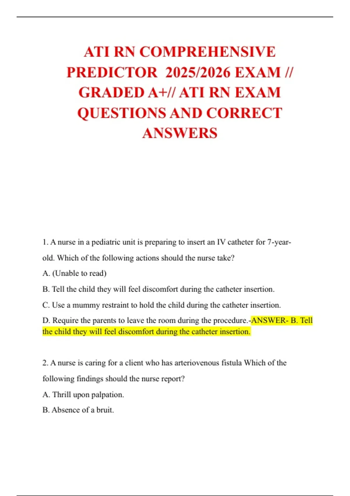 ATI RN COMPREHENSIVE PREDICTOR 2025/2026 EXAM // GRADED A+// ATI RN EXAM QUESTIONS AND CORRECT ANSWERSATI RN COMPREHENSIVE PREDICTOR 2025/2026 EXAM // GRADED A+// ATI RN EXAM QUESTIONS AND CORRECT ANSWERS