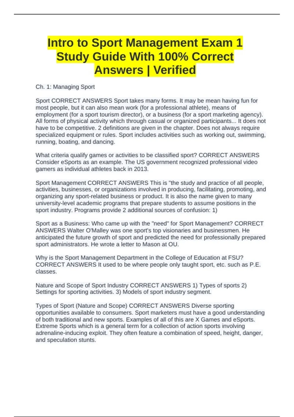 Intro to Sport Management Exam 1 Study Guide With 100% Correct Answers | Verified