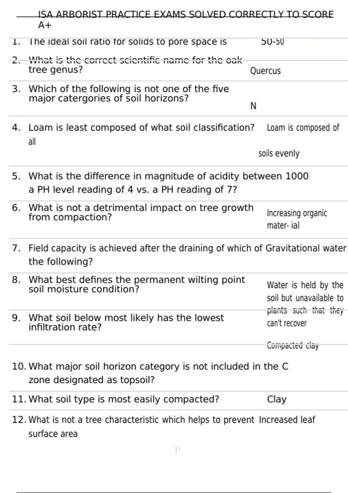 , ISA ARBORIST PRACTICE EXAMS SOLVED CORRECTLY TO SCORE