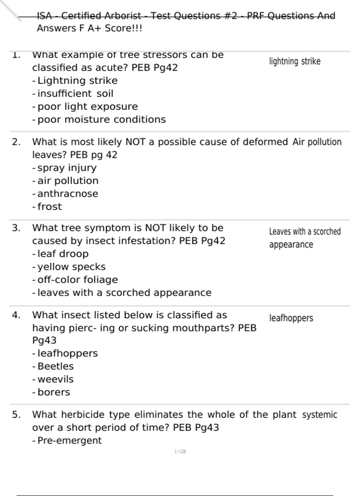 ,ISA - Certified Arborist - Test Questions #2 - PRF Questions And
