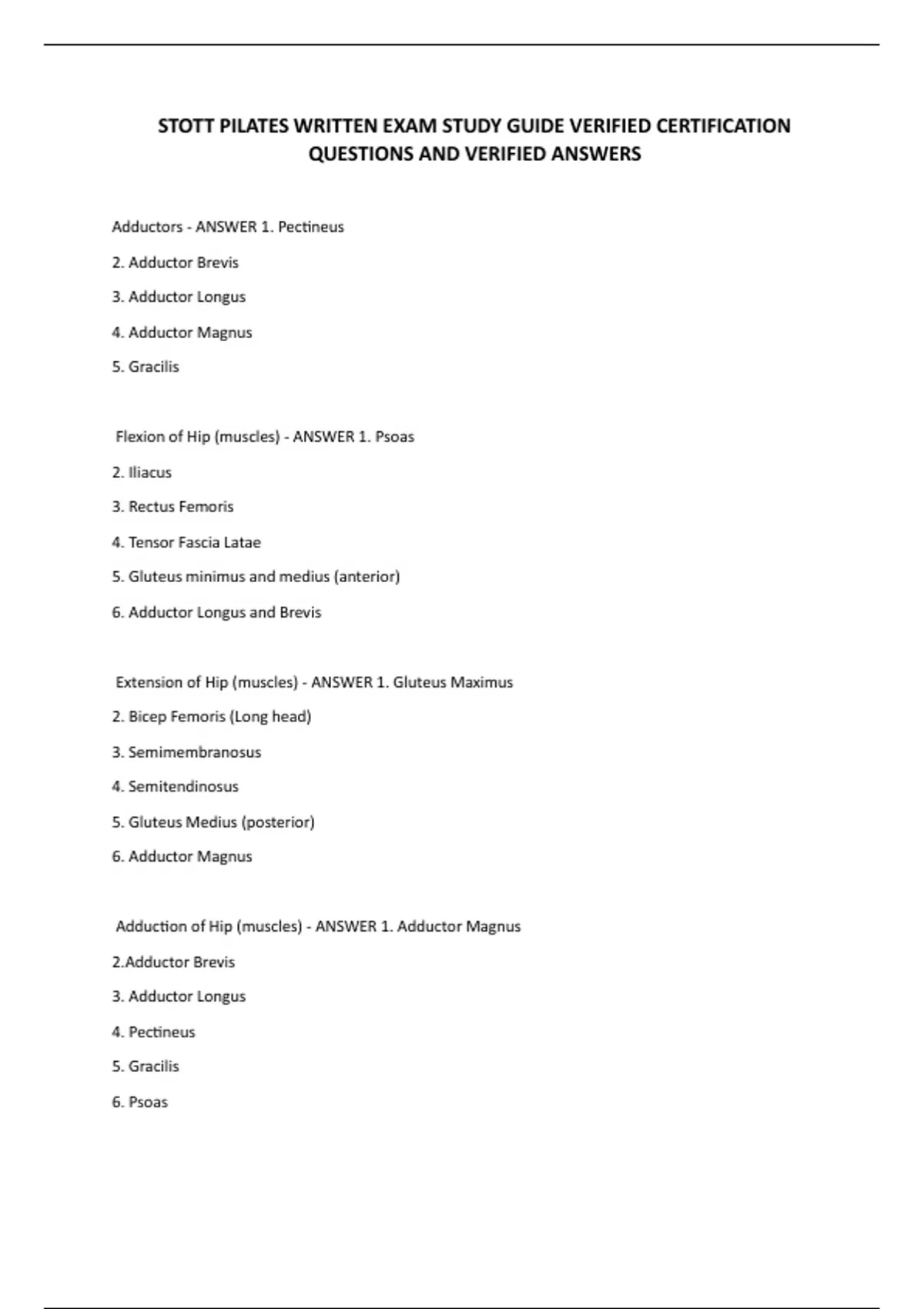 Adductors - ANSWER 1. Pectineus