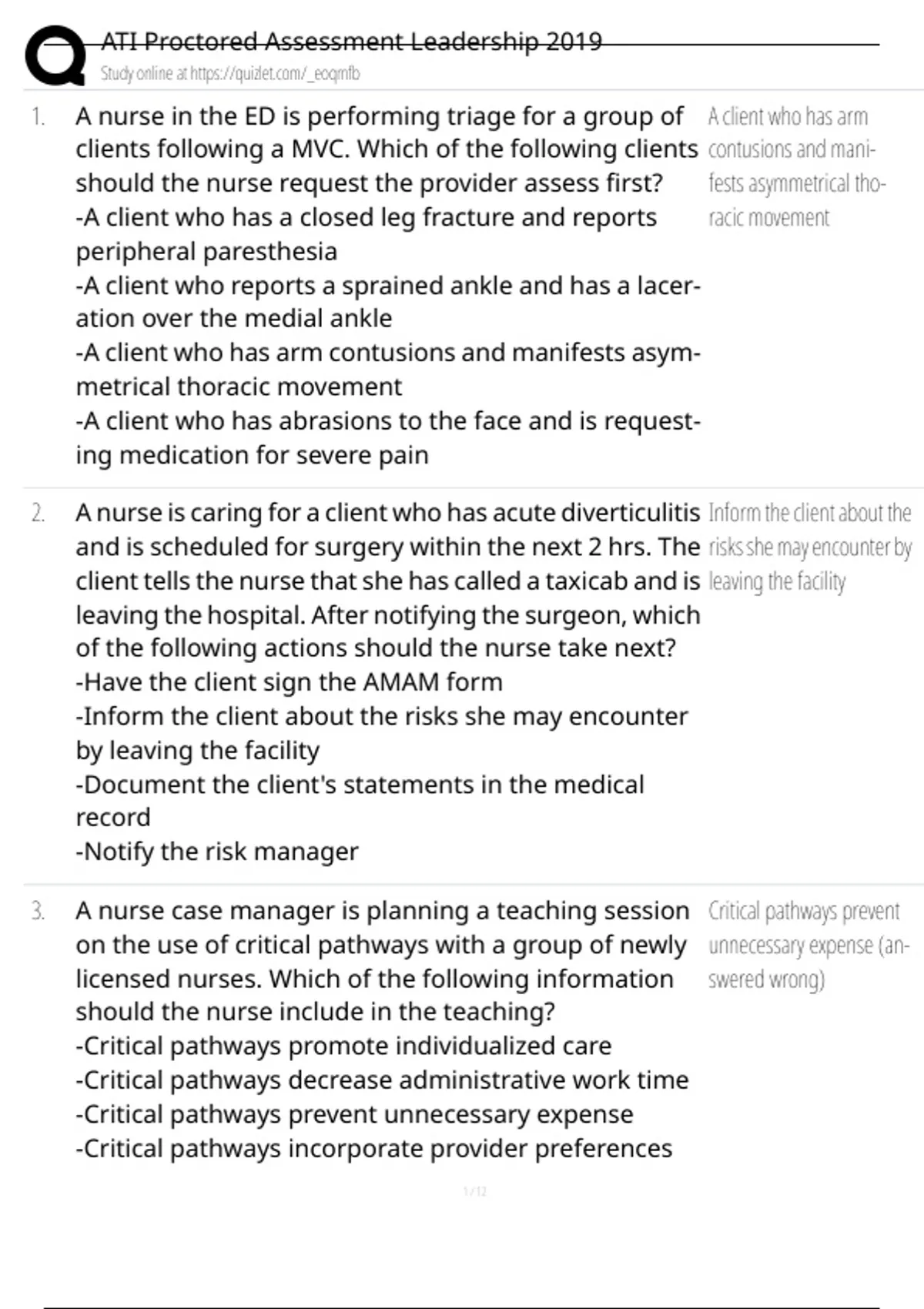 ATI Proctored Leadership Assessment (2019 update, applicable 2025–2026) – Key Questions & Answers