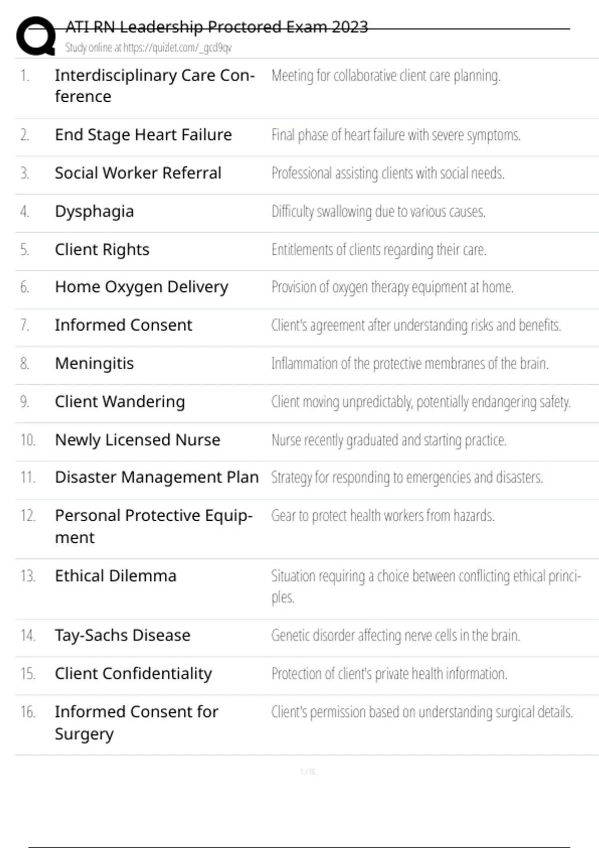 17. Discharge Planning Process of preparing a client for leaving healthcare.
