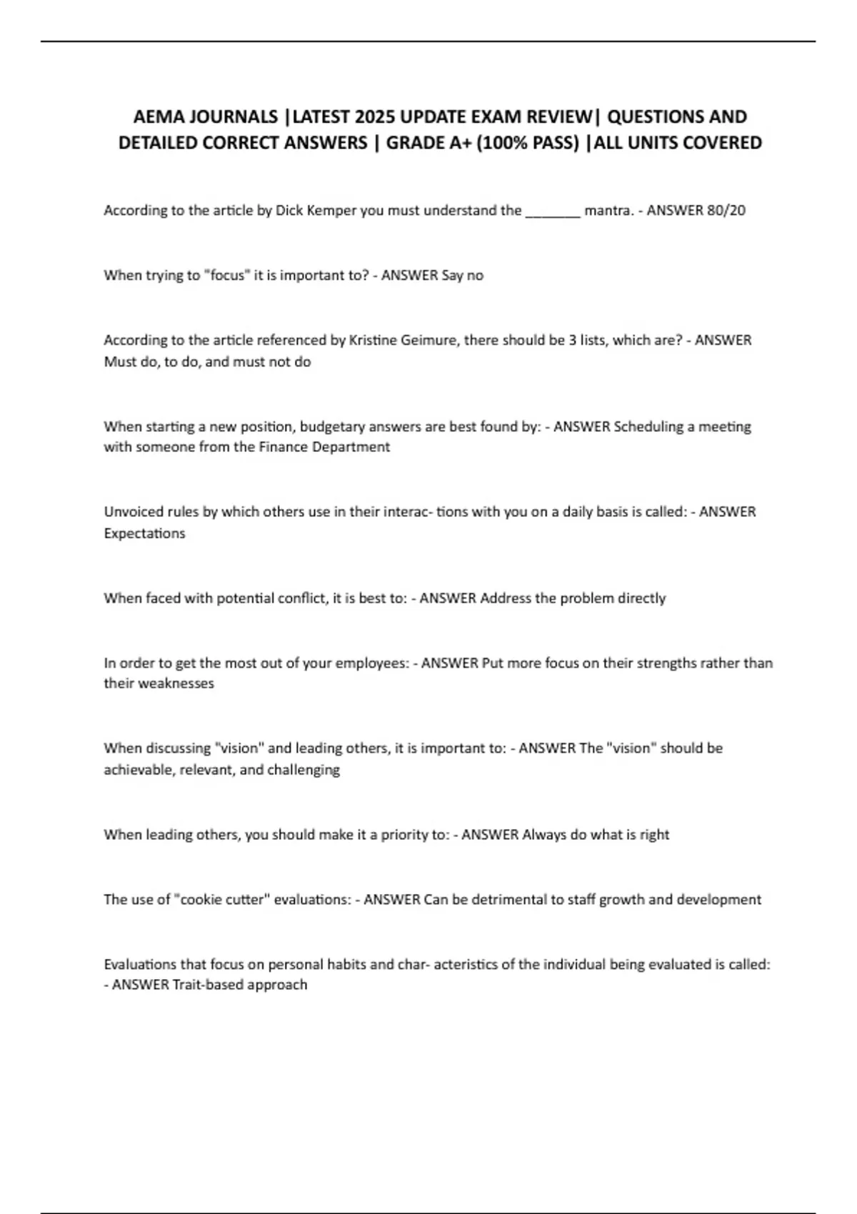 DETAILED CORRECT ANSWERS | GRADE A+ (100% PASS) |ALL UNITS COVERED
