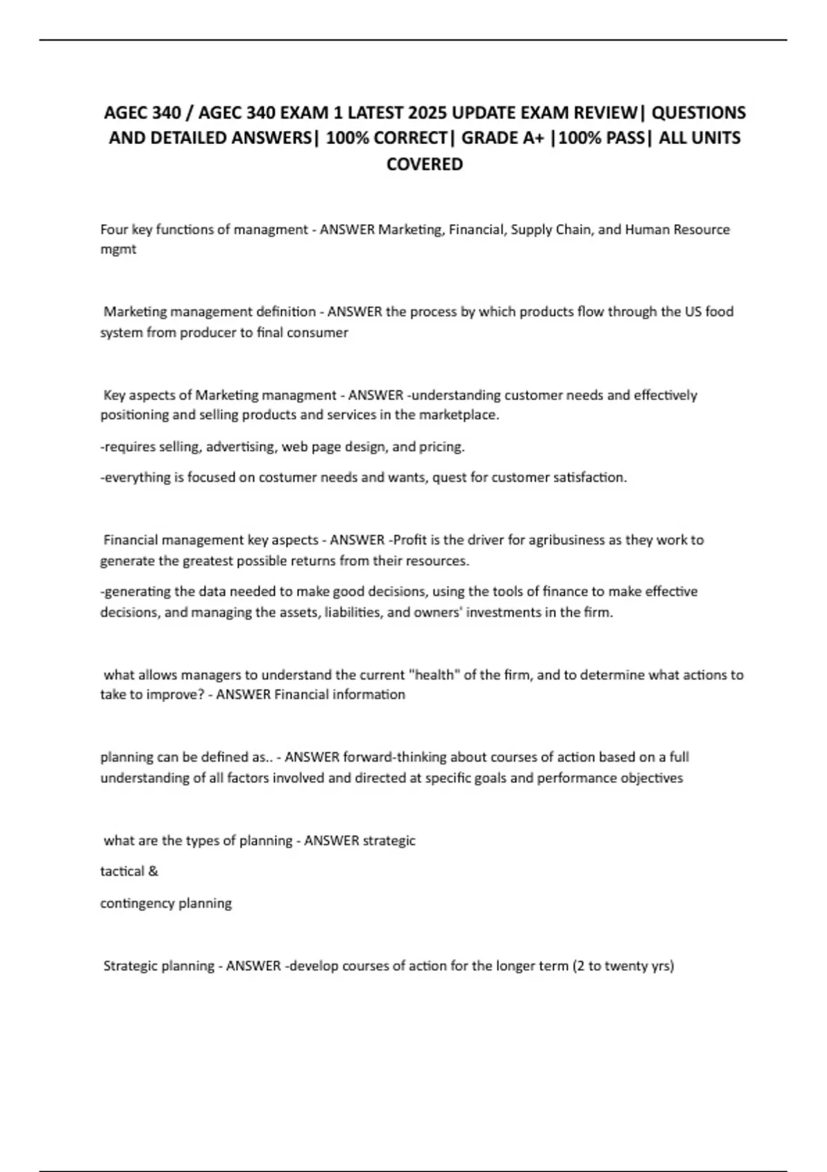 AND DETAILED ANSWERS| 100% CORRECT| GRADE A+ |100% PASS| ALL UNITS