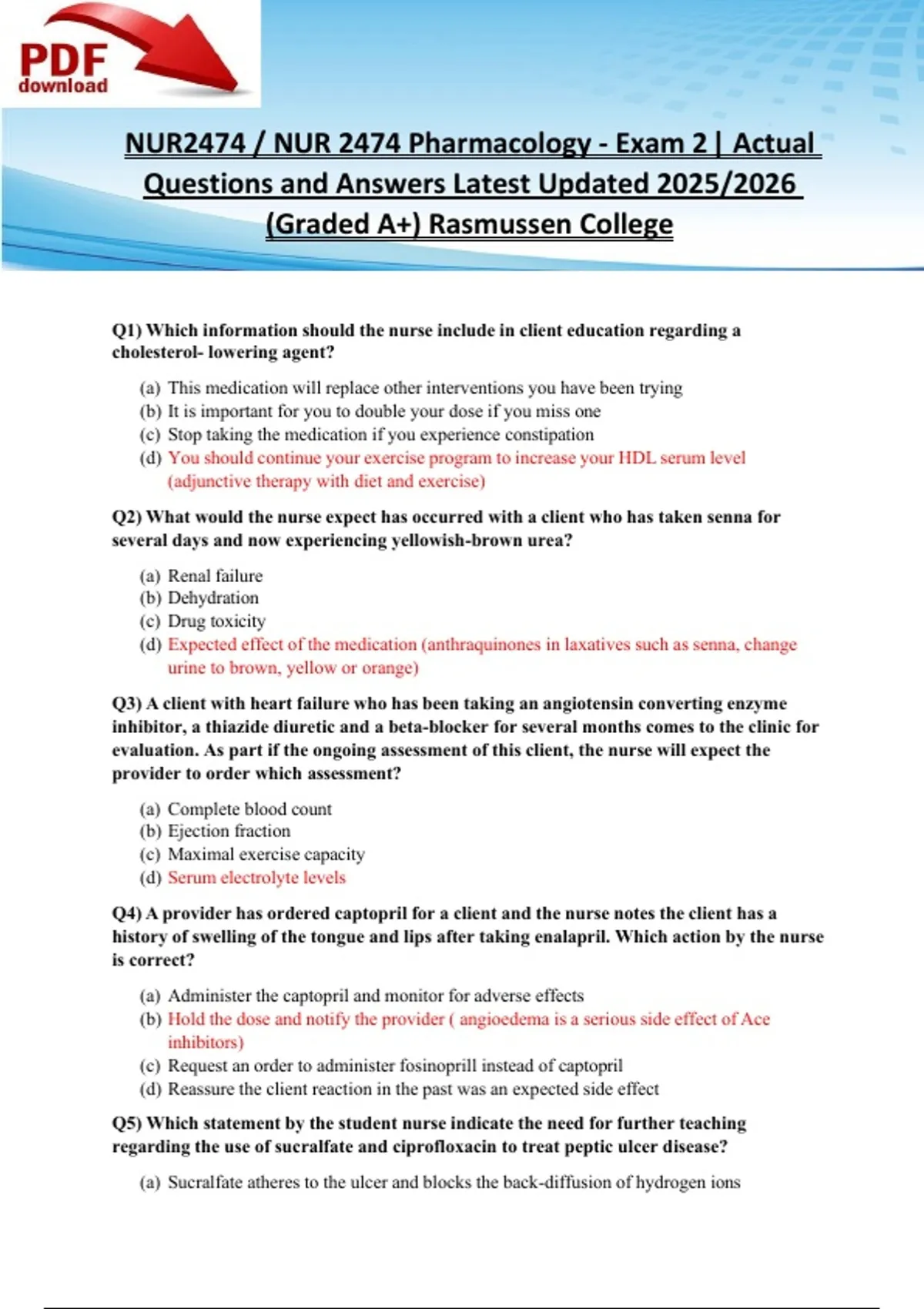 Q4) A provider has ordered captopril for a client and the nurse notes the client has a