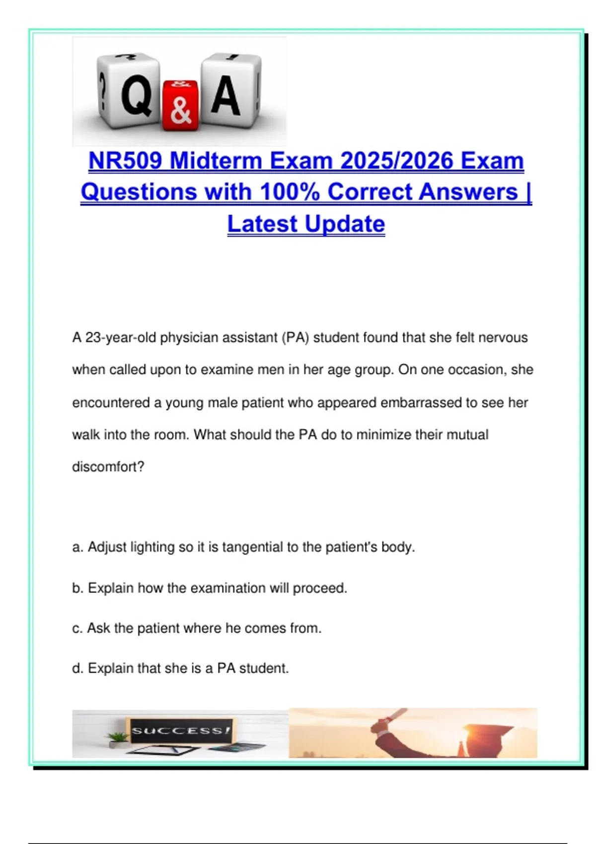 d. Explain that she is a PA student.