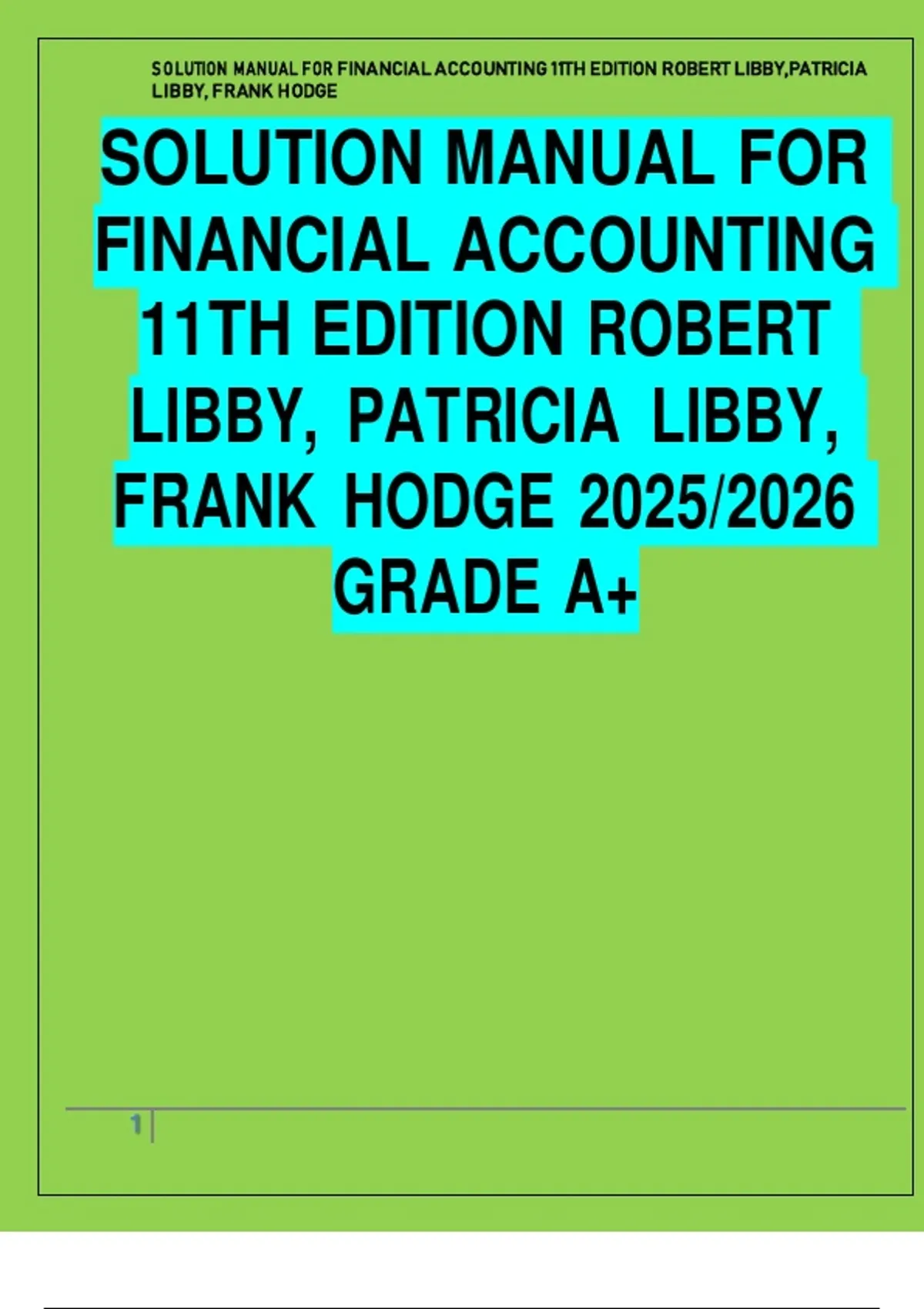 SOLUTION MANUAL FOR FINANCIAL ACCOUNTING 11TH EDITION ROBERT LIBBY, PATRICIA LIBBY, FRANK HODGE 2025/2026 GRADE A+