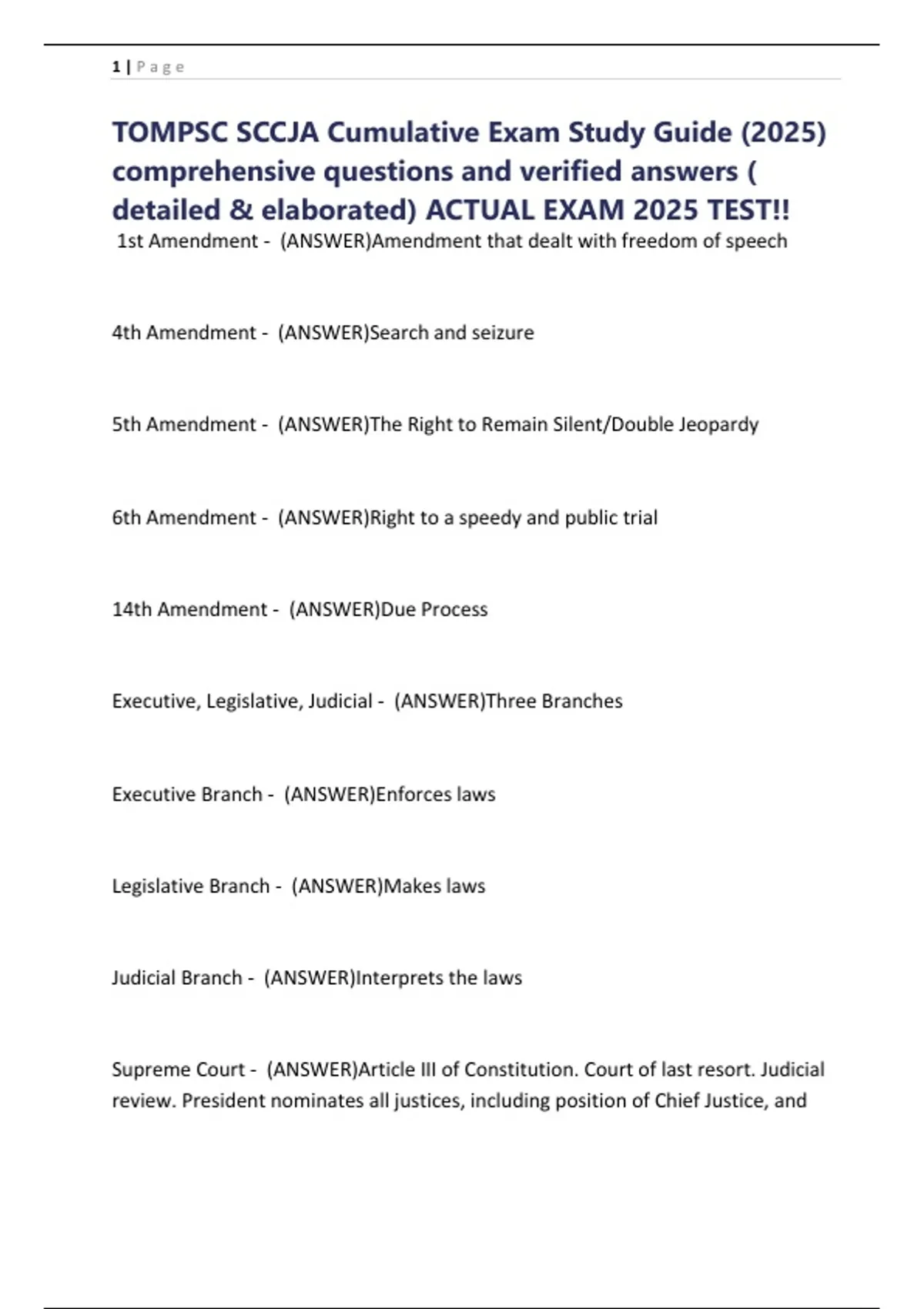 TOMPSC SCCJA Cumulative Exam Study Guide (2025)