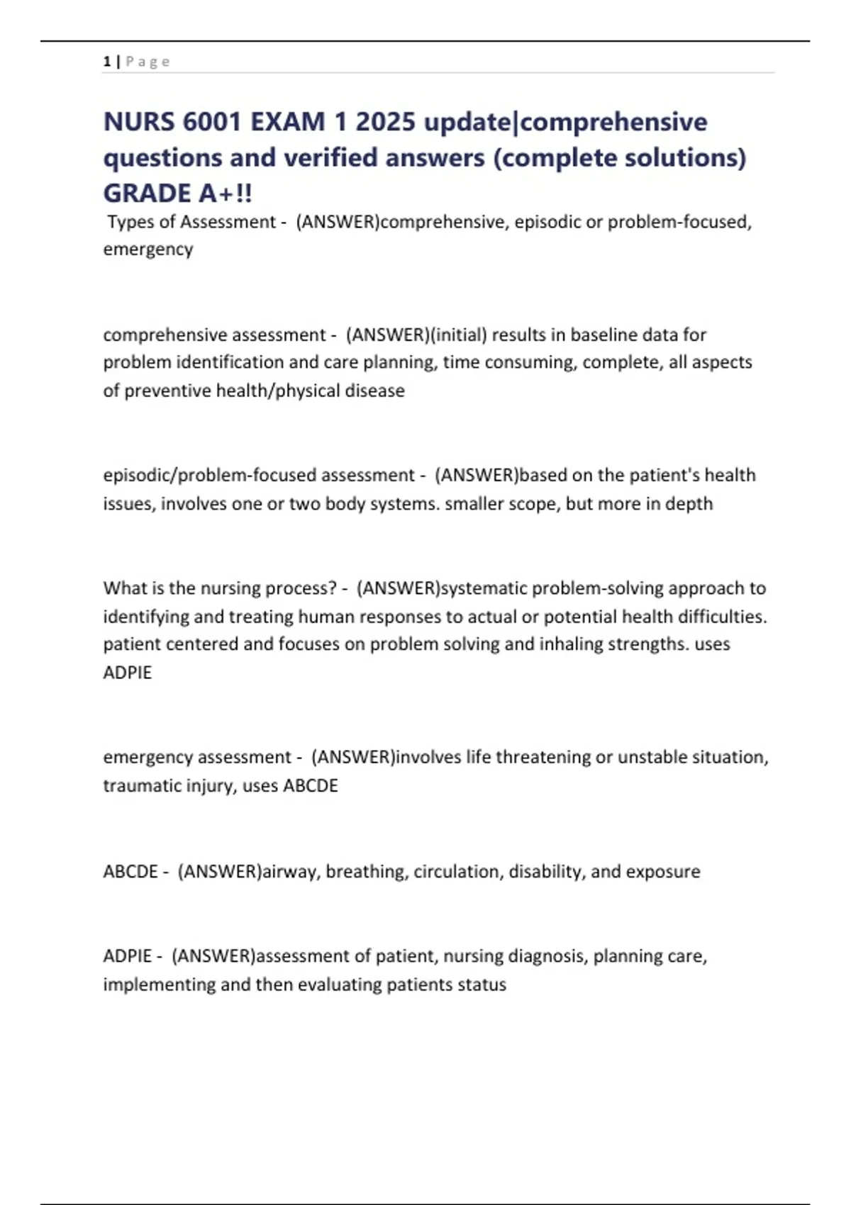 Types of Assessment - (ANSWER)comprehensive, episodic or problem-focused,