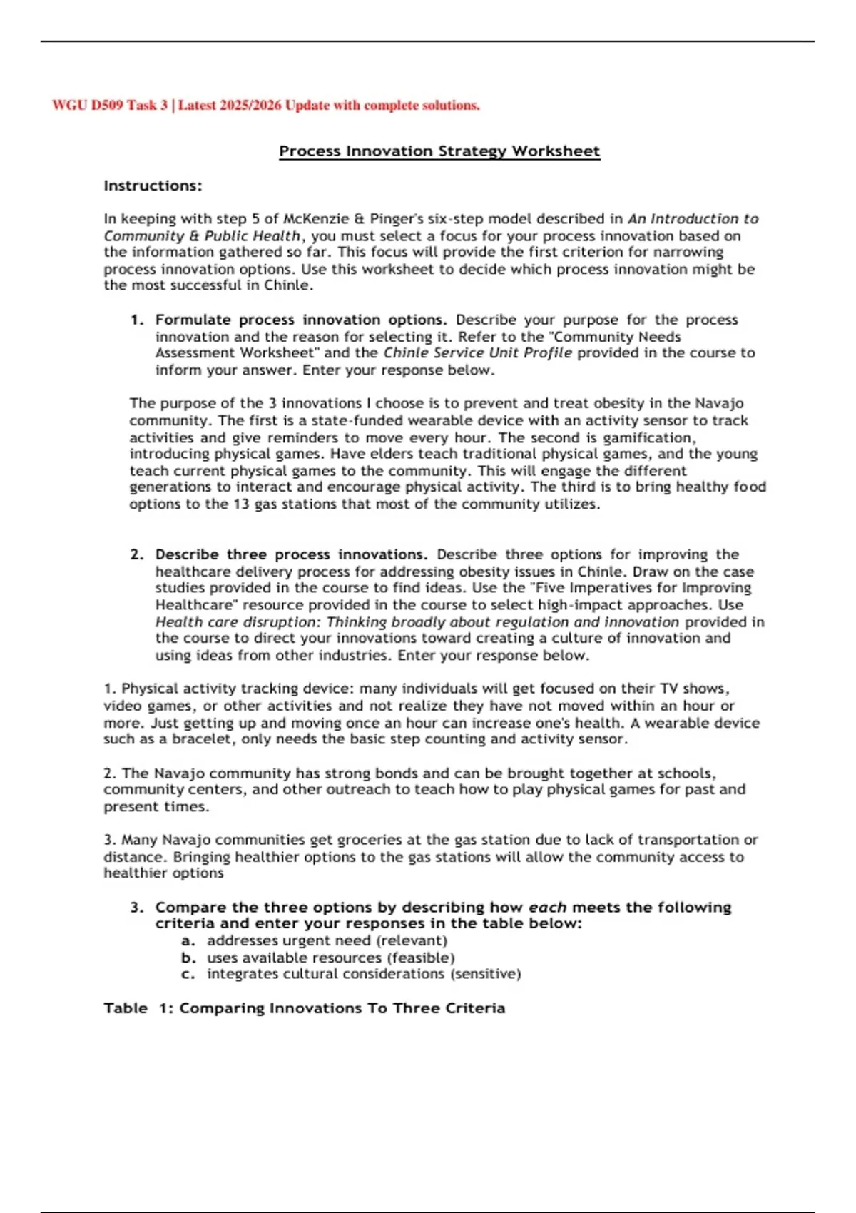 innovation and the reason for selecting it. Refer to the "Community Needs