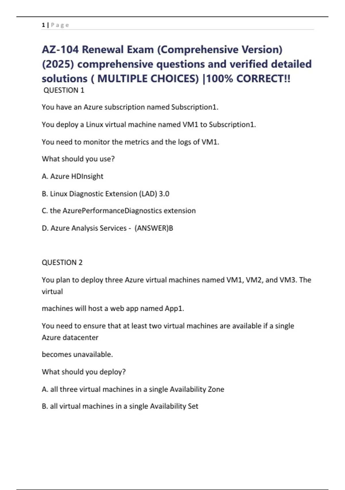 D. each virtual machine in a separate Availability Set - (ANSWER)B